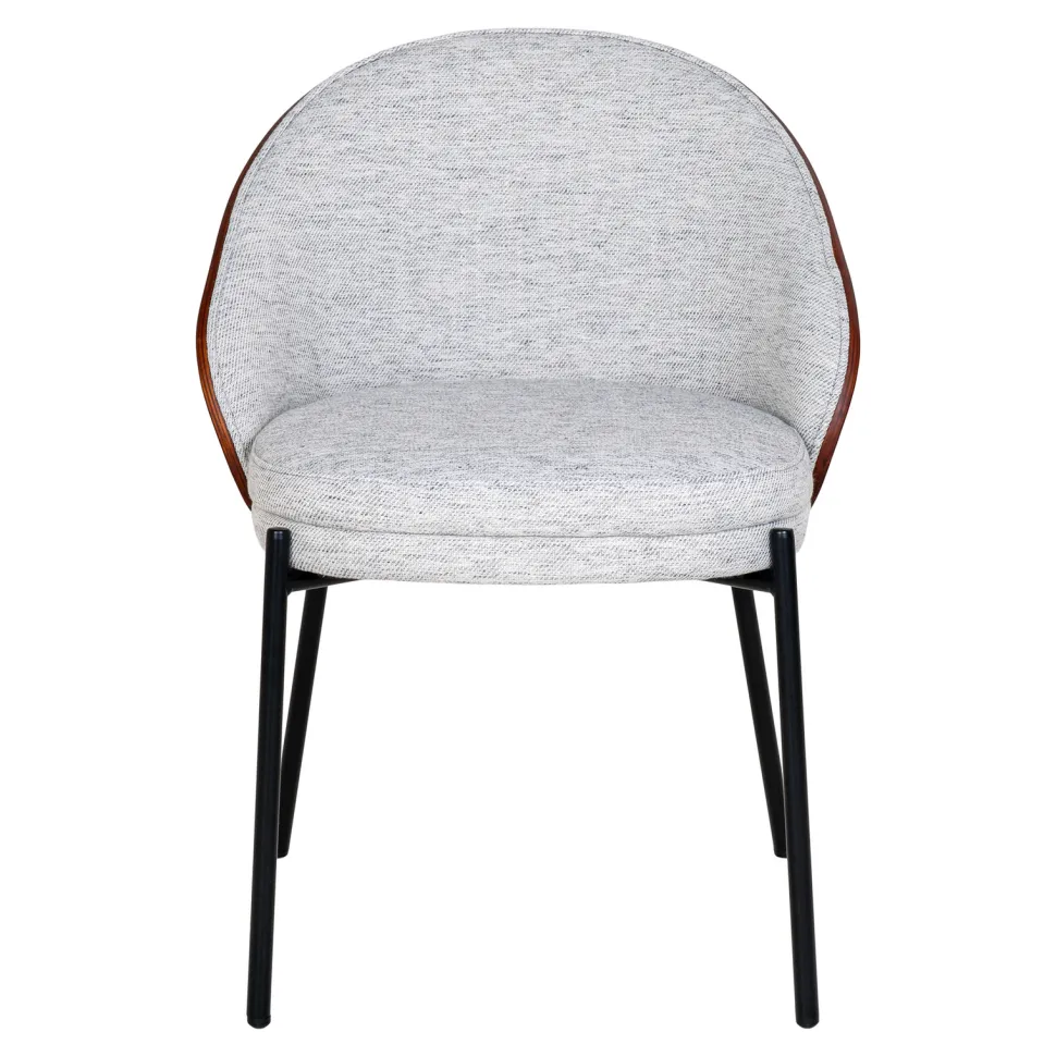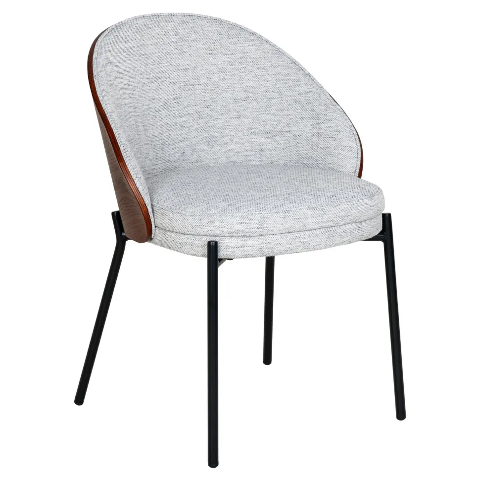 Zapewnij sobie i swoim bliskim komfort podczas codziennych posiłków dzięki krzesłu Canelas. Wyposażone w muszelkowe oparcie, krzesło zapewnia doskonałe podparcie dla pleców, dzięki czemu każdy posiłek stanie się prawdziwym odpoczynkiem. Siedzisko pokryte jest jasnoszarą tkaniną poliestrową, która jest nie tylko elegancka, ale i wyjątkowo trwała. Ciemnobrązowy, orzechowy kolor oparcia wykonanego z płyty MDF dodaje całości eleganckiego wyglądu, który doskonale komponuje się z jasnym siedziskiem.