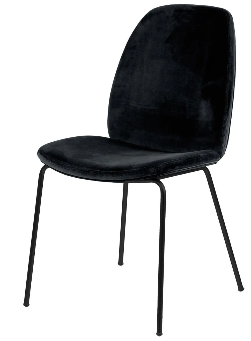 Carmen to krzesło w stylu glamour. Charakteryzuje je ciekawa welurowa tkanina, którą zostało obite. Czarna tkanina VIC black 69AC jest wyjątkowo miękka i miła w dotyku. Siedzisko oraz oparcie są lekko wyprofilowane, aby zapewnić jak najwygodniejszą pozycję do siedzenia. Podstawą krzesła są lakierowane proszkowo metalowe, czarne nogi. Maksymalne obciążenie: 120kg .