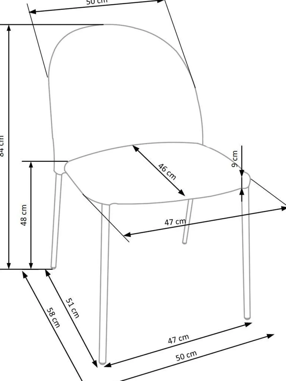 Tapicerowane krzesło glamour Cecile – Intesi Krzesło Cecile od Intesi łączy nowoczesny styl z luksusową aksamitną tkaniną, tworząc efektowne i wygodne siedzisko. Dzięki czterem nogom ze stali malowanej proszkowo, tapicerowane krzesło jest idealne do każdego pomieszczenia. Przedstawiamy krzesło Cecile – najnowszy dodatek do kolekcji mebli domowych. Efektowne i nowoczesne krzesło nada wyrazu każdemu pomieszczeniu w Twoim domu. Jego aksamitne siedzisko z tkaniny zapewnia niezrównany komfort, a malowane proszkowo stalowe nogi zapewniają doskonałą stabilność i wytrzymałość. Krzesło Cecile o wymiarach 50/58/84 cm to ekonomiczna, ale stylowa i równie elegancka opcja dla każdej przestrzeni. Podnieś wystrój swojego salonu lub sypialni dzięki temu olśniewającemu i funkcjonalnemu meblowi! Dodaj krzesło Cecile do swojego domu już dziś, a na pewno się nie zawiedziesz. O tym warto pamiętać! Ciesz się luksusowym i wygodnym fotelem Cecile z aksamitną tkaniną i nowoczesnym stylem glamour. Malowana proszkowo stalowa rama zapewnia doskonałą stabilność, a wymiary 50/58/84 cm zapewniają idealne miejsce do siedzenia.. Solidne i trwałe krzesło Cecile zostało zaprojektowane tak, aby służyć przez wiele lat.