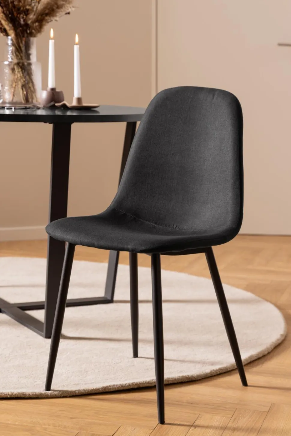 Krzesło Celia to doskonały wybór dla osób ceniących uniwersalność, komfort i styl, który z łatwością wkomponuje się w różnorodne aranżacje wnętrz. Jego ponadczasowy design sprawia, że pasuje zarówno do klasycznych, jak i nowoczesnych jadalni, oferując wygodę i elegancję w jednym. Czarna kolorystyka siedziska w połączeniu z czarnymi, smukłymi nogami nadaje mu wyraźny charakter skandynawskiej estetyki, cenionej za prostotę i funkcjonalność. Dzięki tak uniwersalnemu wyglądowi krzesło Celia można bez trudu dopasować do niemal każdego stołu, niezależnie od jego stylu czy materiału.