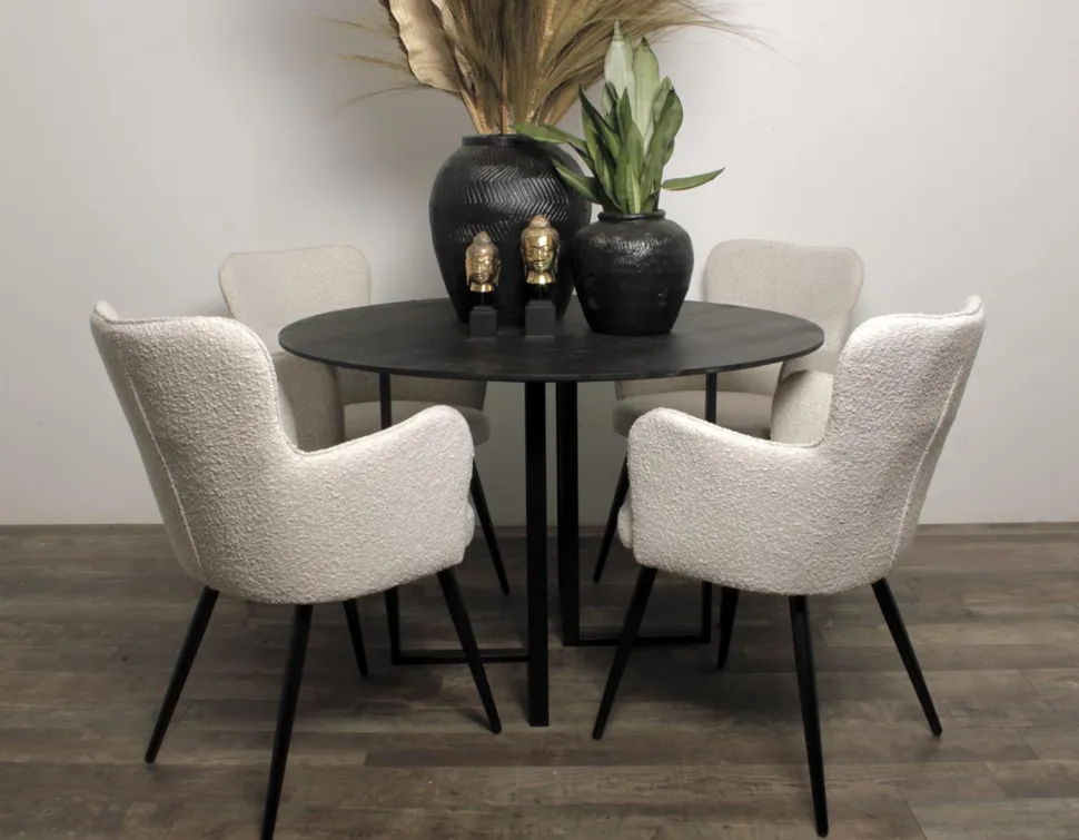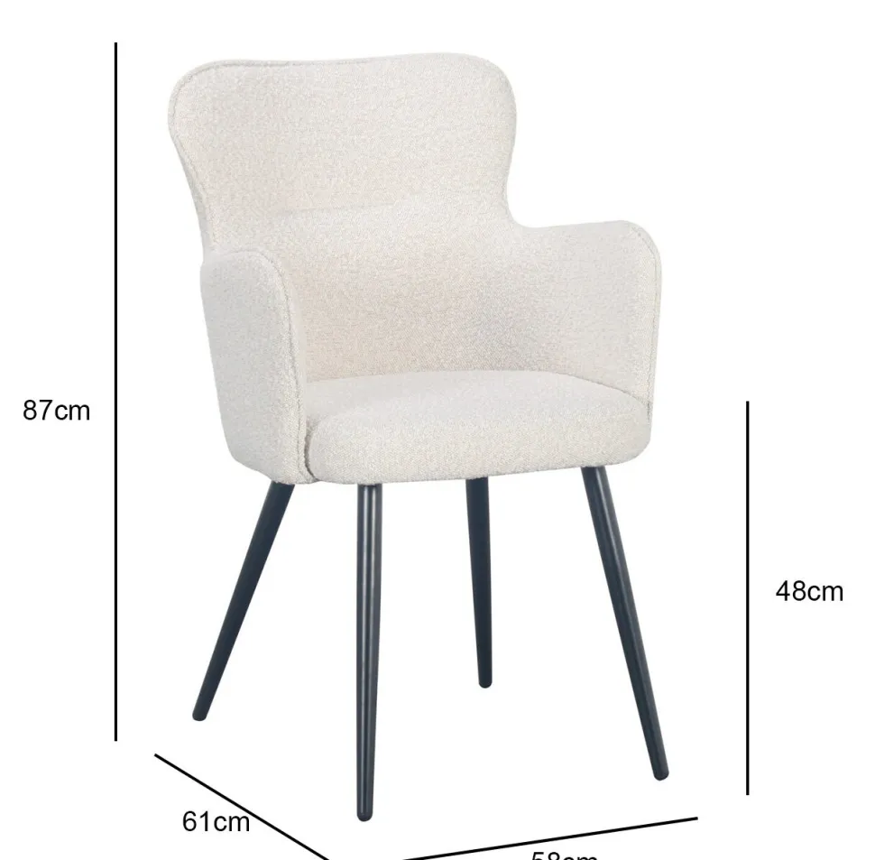 Krzesło Cherson tapicerowane jest tkaniną, która wyglądem i fakturą przypomina owczą wełnę. Jest miękka w dotyku, bardzo przyjemna oraz stanowi modny element designu.
