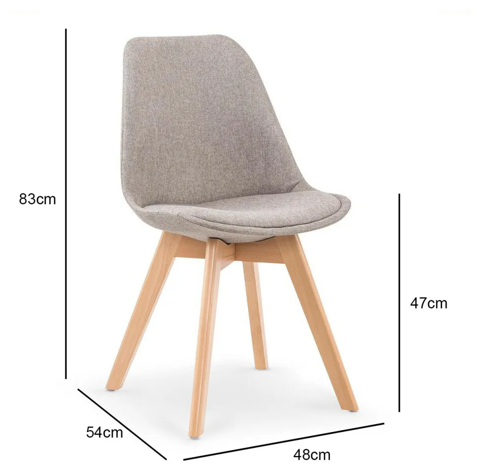 Krzesło tapicerowane Dimi – nowoczesny skandynawski design Krzesło Dimi od Intesi to nowoczesne istylowe tapicerowane krzesło na 4 drewnianych nogach. Charakteryzuje siękonstrukcją z litego drewna bukowego, materiałowym siedziskiem i wymiarami 48/54/83 cm.Przedstawiamy krzesło Dimi – nowoczesny cud wyrafinowanego stylu, który z pewnością zainspiruje. Dzięki minimalistycznemu designowi, krzesło to wyróżnia się w pomieszczeniu swoim wyrazistym wyglądem i opływową sylwetką.Wykonane z dbałością o szczegóły, krzesło Dimi posiada podstawę z litego drewna bukowego i miękkie, przyjemne siedzisko z tkaninyzapewniające długotrwały komfort.Takie połączenie sprawia, że krzesło jest zarówno stylowe, jak i solidne- idealne do każdej przestrzeni potrzebującej odrobiny elegancji. Krzesło o wymiarach 48/54/83 cm zostało zaprojektowane tak, aby zmaksymalizować liczbę miejsc siedzących przy stole, przy jednoczesnym zachowaniu eleganckiej estetyki. Wybierz krzesło Dimi,aby wprowadzić element skandynawskiego pięknado swojej przestrzeni i przekształcić swój dom w kojącą, ale wyrafinowaną przystań. O tym warto pamiętać! Łączy nowoczesny styl ze skandynawskim rzemiosłem Wykonane z litego drewna bukowego i tkaniny zapewniającej długotrwałą wytrzymałość Kompaktowe wymiary sprawiają, że idealnie nadaje się do małych mieszkań