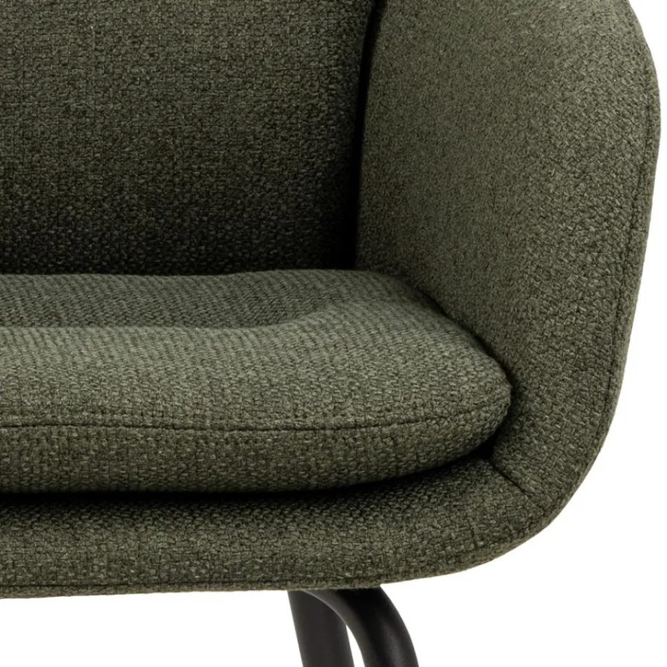 - Wykonane z tkaniny Alea green 61 i malowanej proszkowo stali, co zapewnia jego trwałość i stabilność.