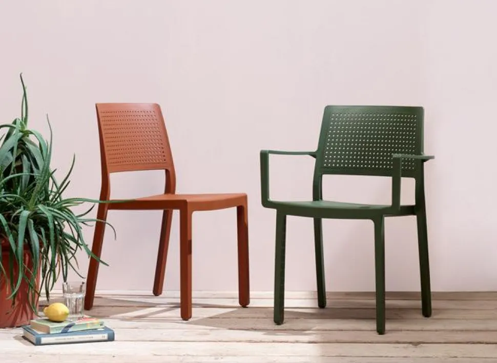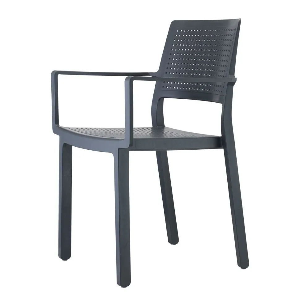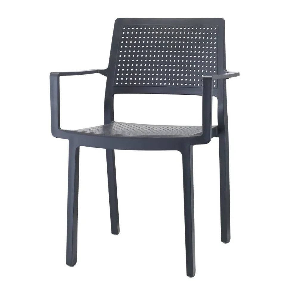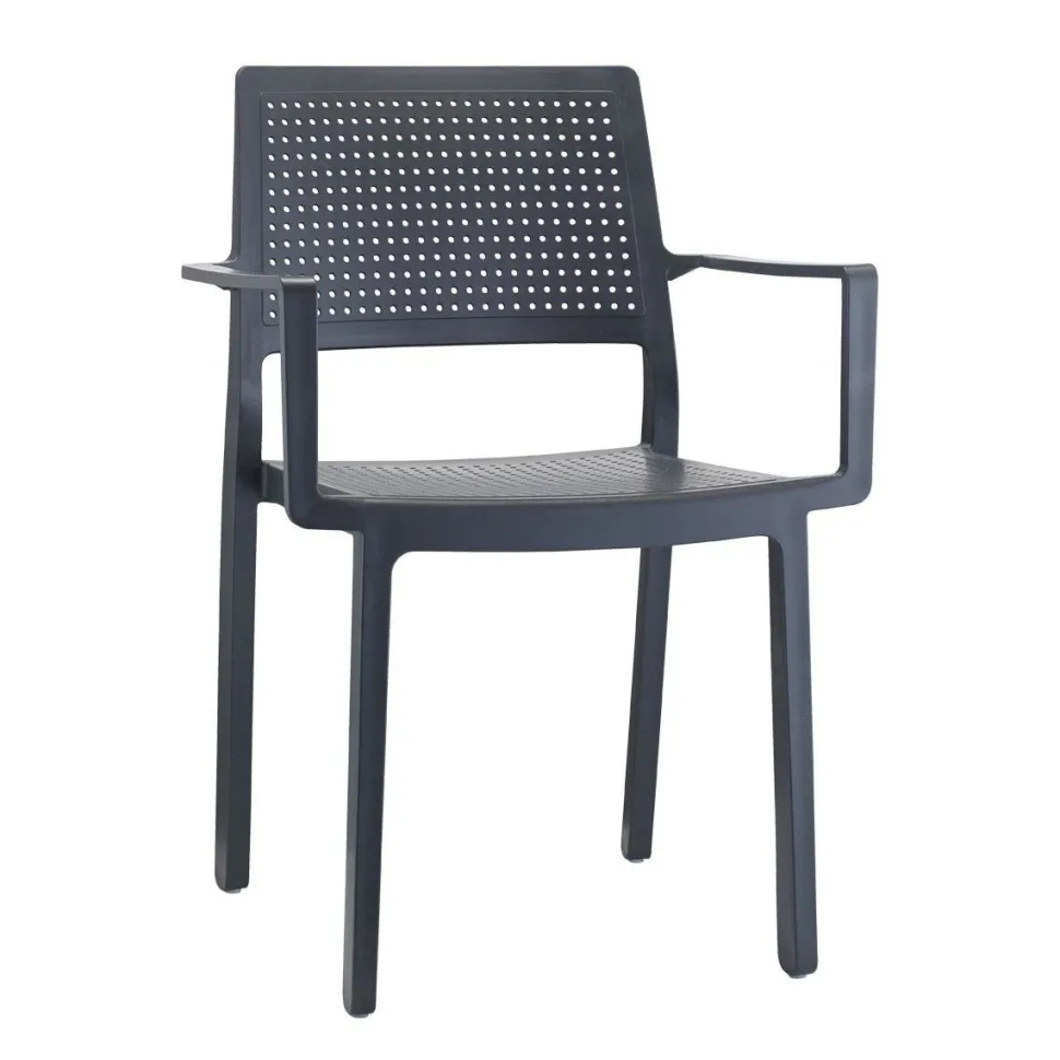 Krzesło Emi to kolejna odsłona klasycznego siedzenia stworzonego z myślą o naszych pięknych ogrodach, tarasach i balkonach.Z pewnością nie raz zdarzyło ci się podczas grilla u znajomych usiąść na pękniętym krześle po przejściach. Krzesło zostało w całości wykonane z techno polimeru, a dodatek perforacji sprawia, że jest ono bardzo wytrzymałe, a upadek nawet podczas najbardziej szalonych imprez staje się tylko przeszłym wspomnieniem.Jednak Emi dzięki swojej prostej, nowoczesnej formiesprawdzi się świetnie również w innych pomieszczeniach na przykład komercyjnych wnętrzach. Specjalny kształt nóg, sprawia, że krzesło sztapluje się, nie pozostawiając szczelin. Dzięki takiej budowie krzesło można sztaplować nawet na bardzo dużych stosach, co znacznie ułatwia przechowywanie. Dzięki półmatowemu wykończeniu, bez problemu można je szybko i sprawnie oczyścić z powstałych zabrudzeń, a obawa przed zniszczeniem krzesła przez niespodziewany deszcz czy intensywne promienie słoneczne może raz na zawsze wypaść nam z głowy, ponieważ Emi to gwarancja odporności na działanie wielu warunków atmosferycznych. Krzesło dostępne w różnych wariantach kolorystycznych oraz w wersji z lub bez podłokietników.