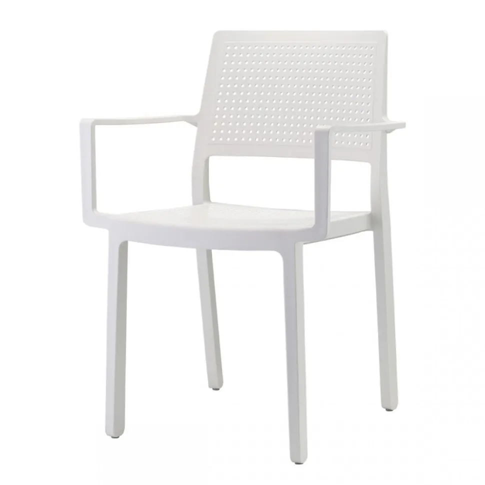 Krzesło Emi to kolejna odsłona klasycznego siedzenia stworzonego z myślą o naszych pięknych ogrodach, tarasach i balkonach.Z pewnością nie raz zdarzyło ci się podczas grilla u znajomych usiąść na pękniętym krześle po przejściach. Krzesło zostało w całości wykonane z techno polimeru, a dodatek perforacji sprawia, że jest ono bardzo wytrzymałe, a upadek nawet podczas najbardziej szalonych imprez staje się tylko przeszłym wspomnieniem.Jednak Emi dzięki swojej prostej, nowoczesnej formiesprawdzi się świetnie również w innych pomieszczeniach na przykład komercyjnych wnętrzach. Specjalny kształt nóg, sprawia, że krzesło sztapluje się, nie pozostawiając szczelin. Dzięki takiej budowie krzesło można sztaplować nawet na bardzo dużych stosach, co znacznie ułatwia przechowywanie. Dzięki półmatowemu wykończeniu, bez problemu można je szybko i sprawnie oczyścić z powstałych zabrudzeń, a obawa przed zniszczeniem krzesła przez niespodziewany deszcz czy intensywne promienie słoneczne może raz na zawsze wypaść nam z głowy, ponieważ Emi to gwarancja odporności na działanie wielu warunków atmosferycznych. Krzesło dostępne w różnych wariantach kolorystycznych oraz w wersji z lub bez podłokietników.