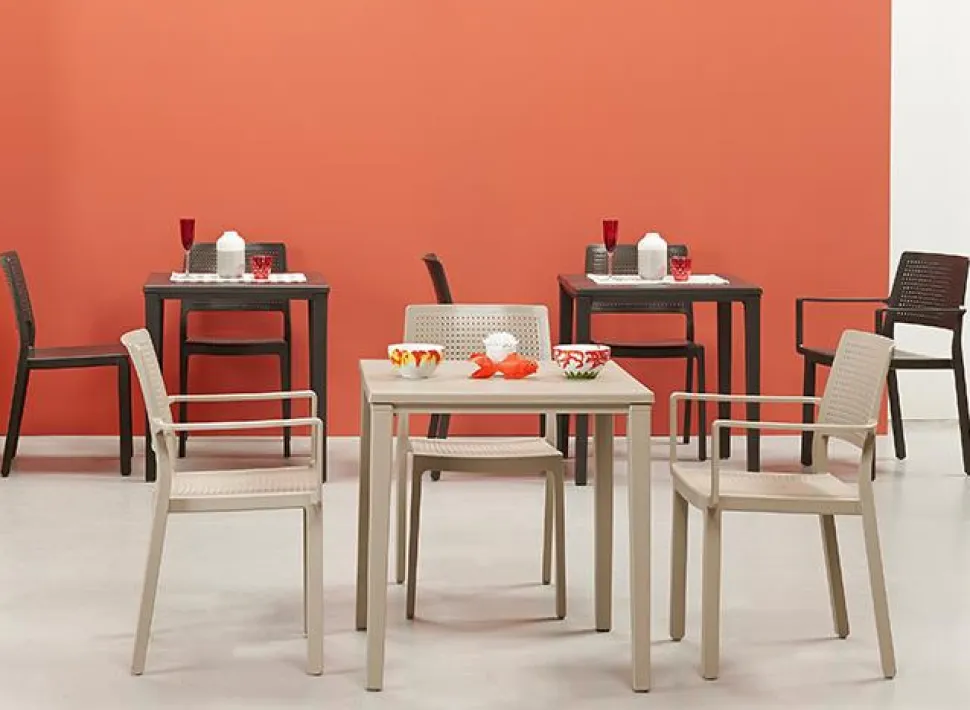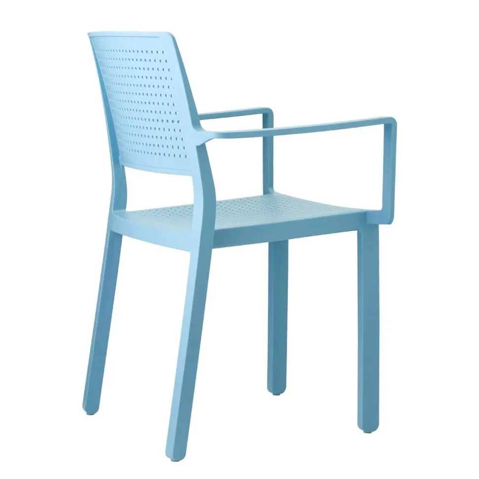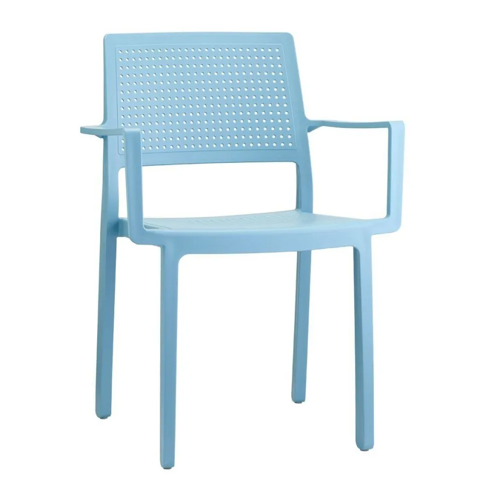 Krzesło Emi to kolejna odsłona klasycznego siedzenia stworzonego z myślą o naszych pięknych ogrodach, tarasach i balkonach. Z pewnością nie raz zdarzyło ci się podczas grilla u znajomych usiąść na pękniętym krześle po przejściach. Krzesło zostało w całości wykonane z techno polimeru, a dodatek perforacji sprawia, że jest ono bardzo wytrzymałe, a upadek nawet podczas najbardziej szalonych imprez staje się tylko przeszłym wspomnieniem. Jednak Emi dzięki swojej prostej, nowoczesnej formie sprawdzi się świetnie również w innych pomieszczeniach na przykład komercyjnych wnętrzach. Specjalny kształt nóg, sprawia, że krzesło sztapluje się, nie pozostawiając szczelin. Dzięki takiej budowie krzesło można sztaplować nawet na bardzo dużych stosach, co znacznie ułatwia przechowywanie. Dzięki półmatowemu wykończeniu, bez problemu można je szybko i sprawnie oczyścić z powstałych zabrudzeń, a obawa przed zniszczeniem krzesła przez niespodziewany deszcz czy intensywne promienie słoneczne może raz na zawsze wypaść nam z głowy, ponieważ Emi to gwarancja odporności na działanie wielu warunków atmosferycznych. Krzesło dostępne w różnych wariantach kolorystycznych oraz w wersji z lub bez podłokietników.