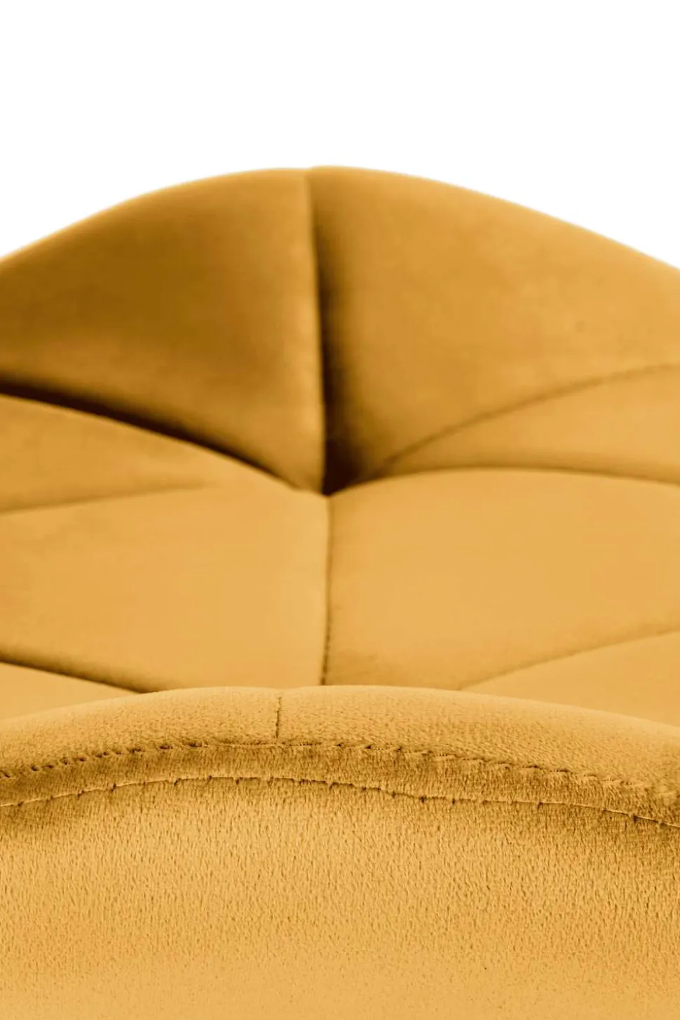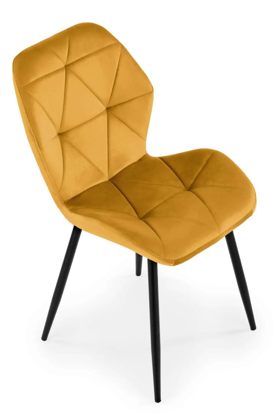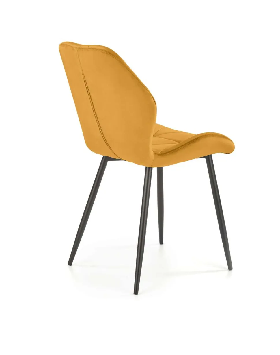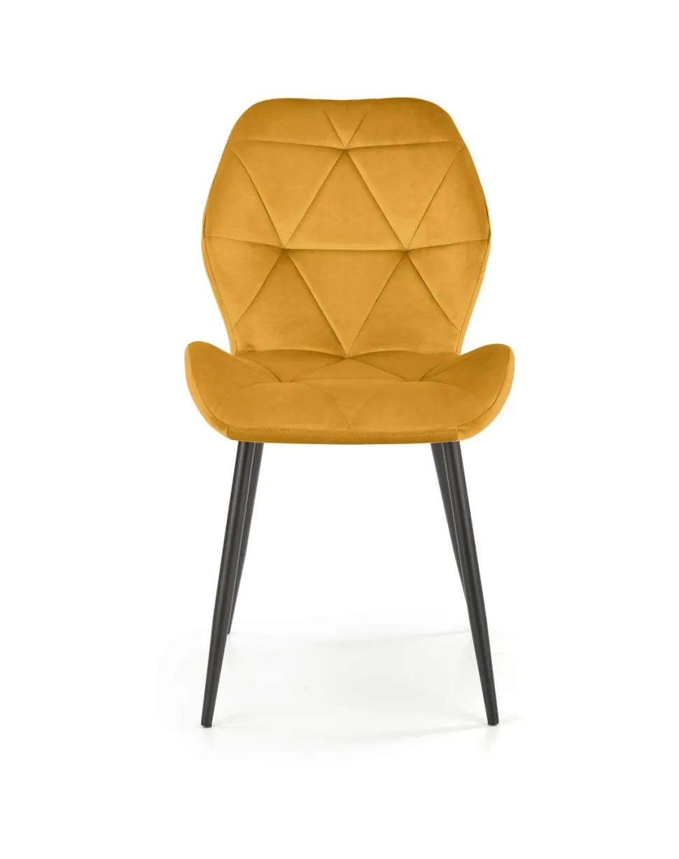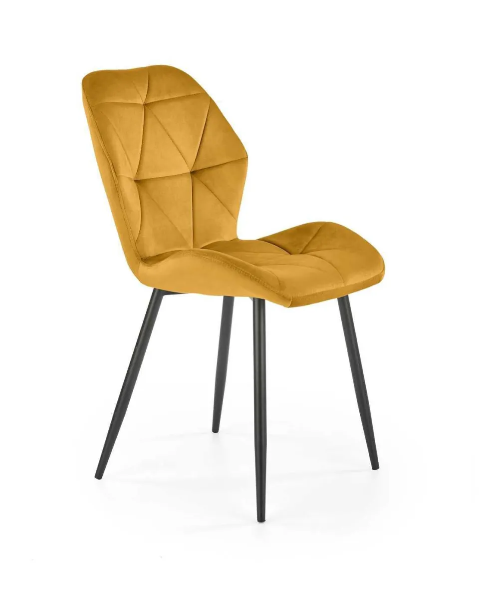 Krzesło Eve – elegancja i komfort w jednym meblu Krzesło Eve to połączenie funkcjonalności i wyrafinowanego designu, które stworzy idealny akcent w Twoim wnętrzu. Jego solidna podstawa z czarnej stali malowanej proszkowo to nie tylko gwarancja trwałości, ale także nowoczesnego wyrazu. Siedzisko krzesła wykonane z przyjemnej w dotyku tkaniny welurowej w stonowanym musztardowym kolorze jest zaprojektowane z myślą o Twoim komforcie. Pikowane siedzisko nie tylko nadaje meblowi elegancji, ale również zapewnia wygodę podczas długotrwałego siedzenia. To idealny mebel na chwile relaksu czy do spotkań przy stole. Krzesło Eve to także szeroka paleta modnych kolorów do wyboru, co pozwala dostosować je do swojego osobistego gustu oraz charakteru pomieszczenia. Widoczne przeszycia na siedzisku dodają meblowi subtelnego uroku, co czyni je nie tylko funkcjonalnym, ale także dekoracyjnym elementem wystroju wnętrza. Krzesło Eve to nie tylko miejsce do siedzenia, to wyraz Twojego stylu i wyjątkowości wnętrza. Przygotuj się na mądry wybór! Krzesło Eve to harmonia designu i wygody. Stalowa podstawa malowana proszkowo gwarantuje trwałość i nowoczesny wygląd. Pikowane siedzisko z miłej w dotyku tkaniny welurowej dostarcza niezrównanego komfortu. Dostępność wielu modnych kolorów umożliwia dopasowanie krzesła do każdego wnętrza. Widoczne przeszycia dodają meblowi uroku i elegancji.