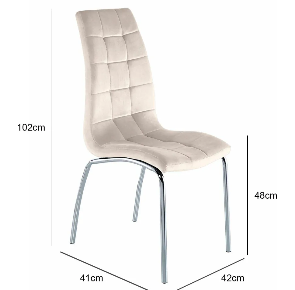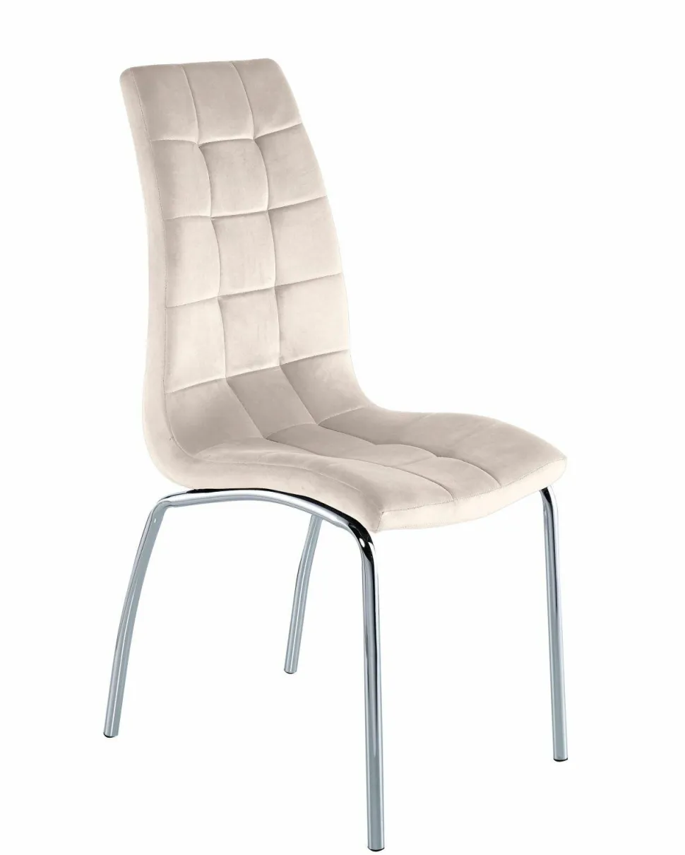 Krzesło Ezara wykonane jest z wysokiej jakości materiałów. Tapicerka z welwetu nadaje mu eleganckiego wyglądu oraz miękkości w dotyku. Metalowy stelaż, pomalowany proszkowo na srebrny kolor, zapewnia stabilność i trwałość, jednocześnie dodając industrialnego uroku. Kombinacja beżowej tapicerki z srebrnym stelażem tworzy harmonijny kontrast, który doskonale komponuje się z różnymi stylami aranżacji wnętrz. Krzesło Ezara Velvet będzie doskonałym uzupełnieniem zarówno nowoczesnych, jak i klasycznych przestrzeni. Dzięki swojemu eleganckiemu wyglądowi i wysokiej jakości wykonania, krzesło Ezara Velvet nie tylko doda uroku Twojemu otoczeniu, ale także zapewni wygodę podczas codziennego użytkowania.
