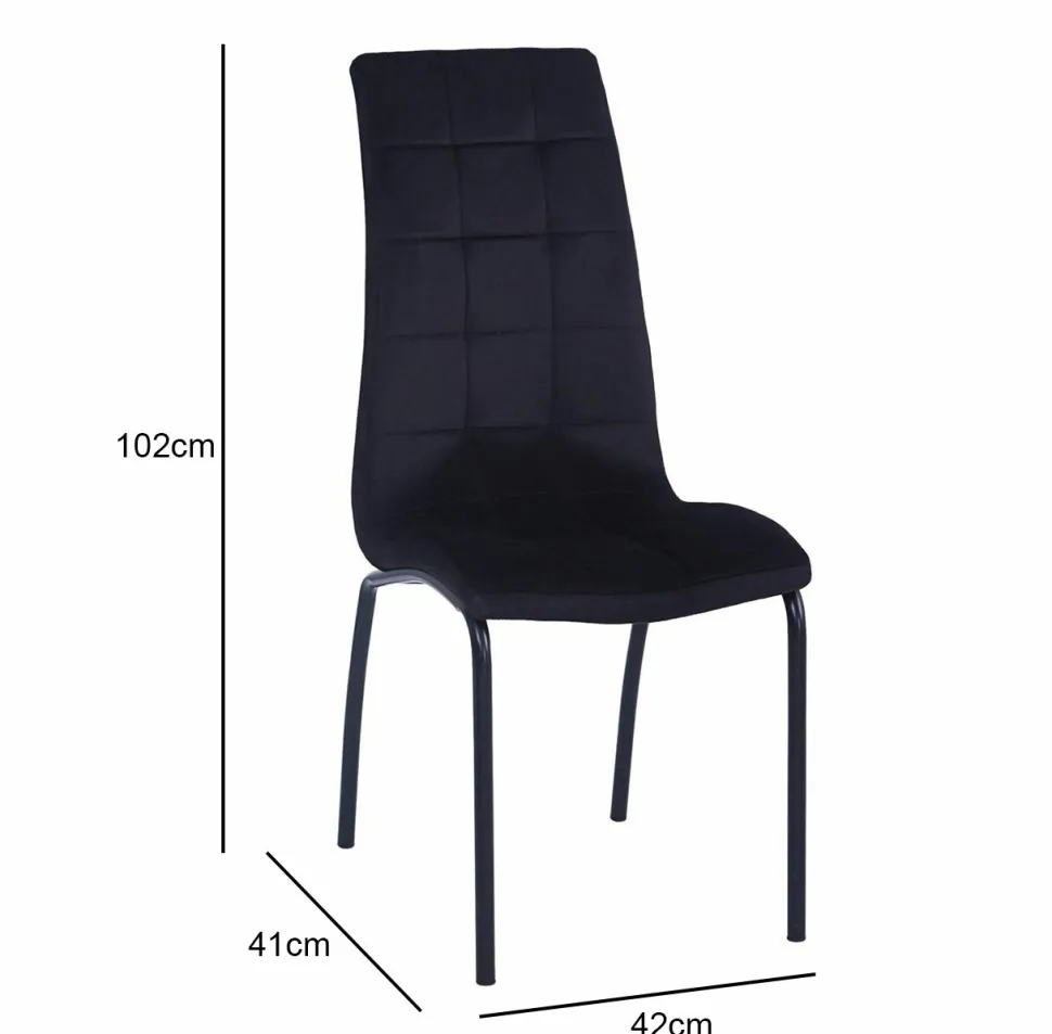 Precyzyjnie wymiary– wysokość całkowita 102 cm, szerokość siedziska 42 cm, głębokość siedziska 41 cm oraz wysokość do siedziska 48 cm –ergonomia i komfort podczas użytkowania.Tapicerka z miękkiego weluru nadaje krzesłu elegancki wyglądi wygodny w dotyku komfort. Metalowa, malowana proszkowo podstawa, zapewnia trwałość i solidność. Dostępne w różnych kolorach, krzesło Ezara Velvet zapewnia możliwość dopasowania do indywidualnego wyposażenia oraz stylu wnętrza. Szerokie możliwości projektowania i wysokiej jakości wykonania, krzesło Ezara Velvet będzie idealne do jadalni, salonu i kuchni, nie tylko dla wygody, ale także eleganckiego wyglądu każdej przestrzeni.
