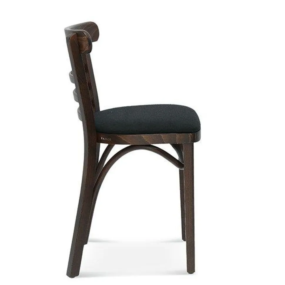 Krzesło Fameg A-225 dostępne jest w wielu opcjach wybarwienia drewna. Całość konstrukcji zrobiona jest z drewna bukowego, a siedzisko jest miękkie i tapicerowane. Rodzaj materiału obicia również podlega personalizacji, pozostawiając pole na wiele kombinacji kolorystycznych. Wygodę siedzenia zapewnia nie tylko siedzisko, ale również wyprofilowane oparcie, przyjemne dla kręgosłupa. Ponieważ krzesło produkowane jest na zamówienie, nie istnieje możliwość zwrotów i wymiany.