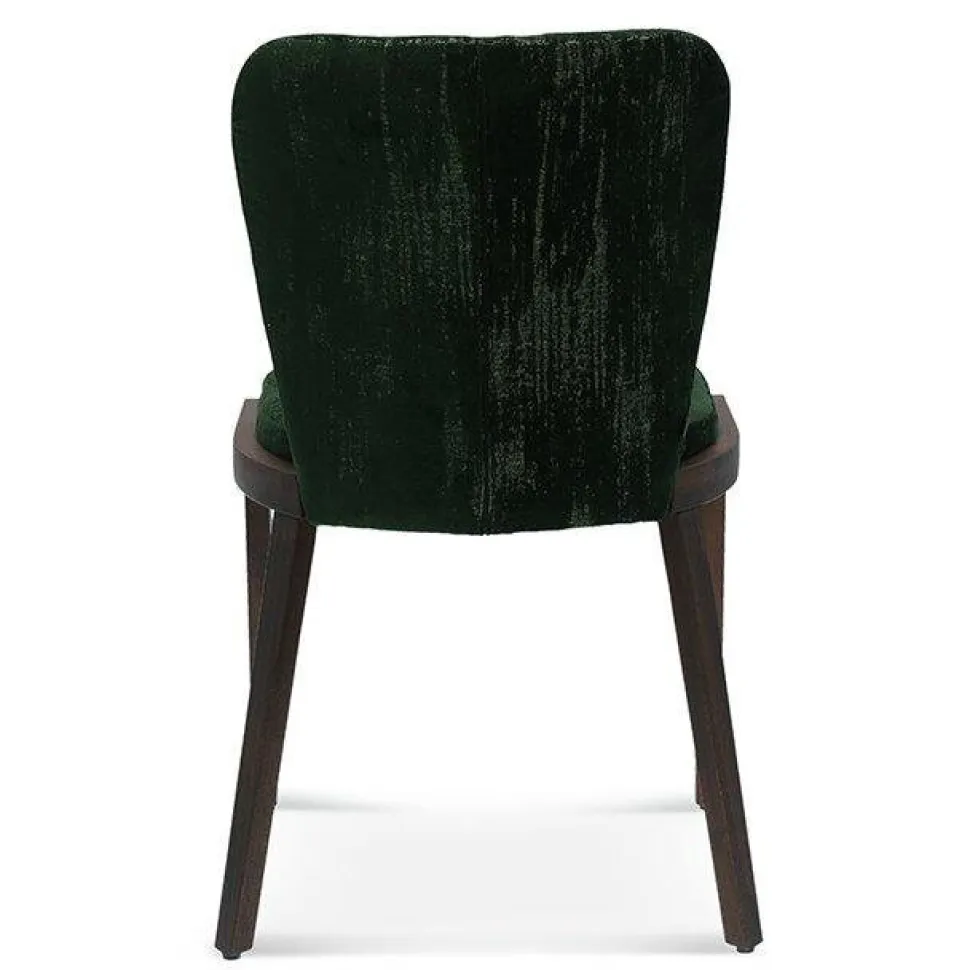 Krzesło wykonane z drewna bukowego (możliwość wyboru wybarwienia) to propozycja do jadalni lub restauracji. Wyróżnia się lekko poszerzającym się u góry oparciem. Posiada również wygodne, szerokie siedzisko. Zarówno oparcie jak i siedzisko pokryte są tapicerką (wybór tkaniny). Nogi krzesła, lekko rozchodzące się na boki, od dołu zabezpieczone są specjalnymi nakładkami. Taka konstrukcja sprawia, że krzesło jest bardzo stabilne i bezpieczne w użytkowaniu.