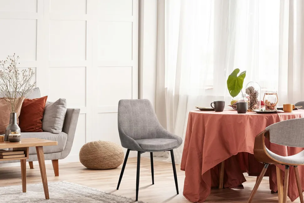 Krzesło Floyd to wygodne krzesło łączące w sobie modny minimalizm i nowoczesne wykończenia. Unikalne, miękkie siedzisko krzesła zostało umieszczone na smukłych nogach, dzięki czemu całość prezentuje się lekko i stylowo. Podstawę krzesła stanowią metalowe, pomalowane proszkowo na czarno, nogi gwarantujące konstrukcji stabilność. Na nóżkach umieszczone zostało miękkie siedzisko pokryte nowoczesną tkaniną przypominającą sztruks, która jest niezwykle przyjemna w dotyku, zwiększając tym samym poziom komfortu podczas użytkowania. Krzesło Floyd to modne krzesło do jadalni. Będzie ono również odpowiednim krzesłem do restauracji. Siedzisko mebla odznacza się komfortową formą, dzięki czemu w krześle można poczuć się naprawdę wygodnie.Głębokość siedziska: 42cmSzerokość siedziska (bez boków): 37cm