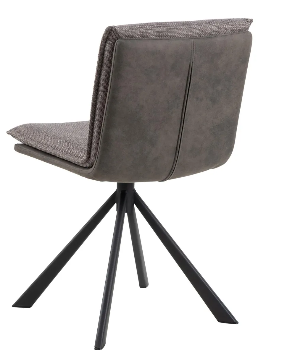 Wyrazisty wygląd krzesła Flynn jest podkreślany przez obrotową podstawę, która nadaje mu nowoczesnego i funkcjonalnego charakteru. Dzięki możliwości obracania, krzesło staje się wszechstronnym meblem, który może być dostosowany do różnych potrzeb i sytuacji. Styl krzesła Flynn jest nowoczesny i idealnie pasuje do współczesnych wnętrz. Jego minimalistyczna forma i staranne wykończenie sprawiają, że jest on doskonałym uzupełnieniem każdej jadalni, nadając jej elegancji i świeżości. Siedzisko mebla zostało tapicerowane antracytową tkaniną z mikrofibry, która posiada specjalną powłokę, nadającą mu surowy wygląd. Ta trwała i łatwa w pielęgnacji tkanina zapewnia nie tylko estetykę, ale także wygodę podczas długotrwałego siedzenia.