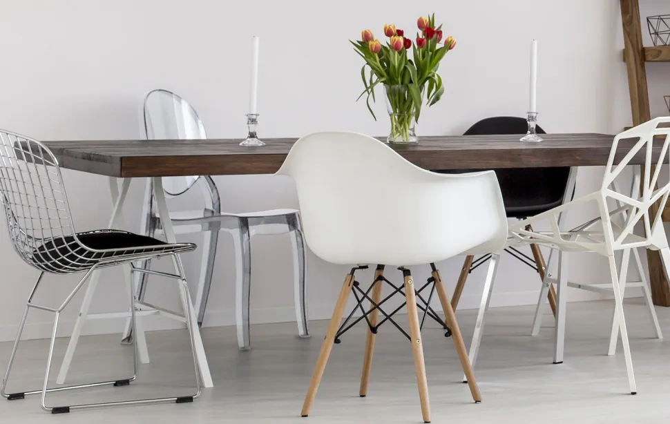 - krzesła dostępne w kolorze bieli lub czerni