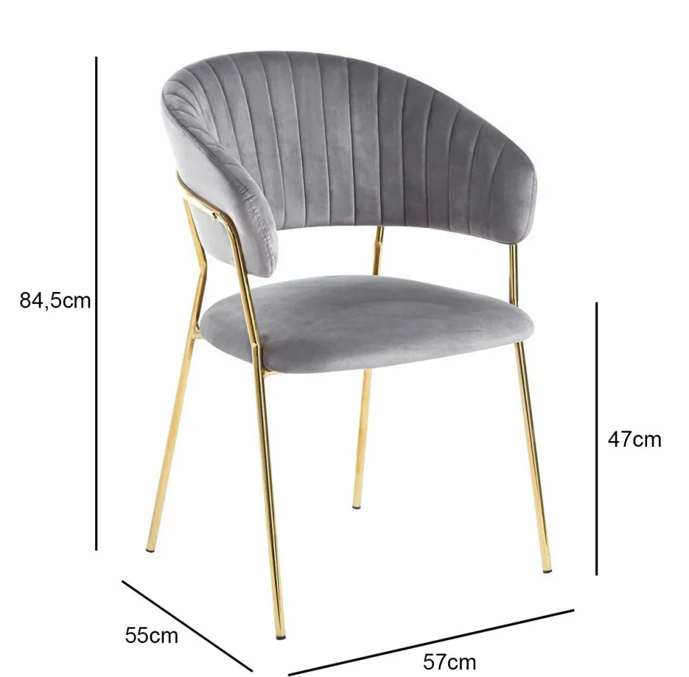 Przygotuj się na wybitny glamour z szarym aksamitnym krzesłem od Intesi Przygotuj się na glamour swojej przestrzeni z luksusowym aksamitnym krzesłem od Intesi. Przyciągający wzrok mebel maszare aksamitne siedzisko i oparcie,złote nogii wygodną 9-centymetrową przerwę między siedziskiem a oparciem. Zaktualizuj swój wystrój domu w dobrym stylu już dziś! Zrób wrażenie dzięki luksusowemu krzesłu Glamour Velvet. Krzesło to wyróżnia się wyrafinowanym, nowoczesnym designem, luksusową aksamitną tapicerką i modnymi detalami. Wyposażone wnogi z chromu, zachęcającąszerokość 50 cm i wysokość 9 cm między siedziskiem, a oparciem, krzesło to zapewnia maksymalny komfort i styl. Klasyczne szare siedzisko z elegancką złotą podstawą podkreśli każdy stylowy wystrój domu i nada głębi każdemu pomieszczeniu. Niezależnie od tego, czy szukasz czegoś wyjątkowego do swojego salonu, czy po prostu chcesz dodać odrobinę blaskudo przestrzeni biurowej, krzesło Glamour Velvet ma to wszystko! O tym warto pamiętać! Luksusowy komfort aksamitnego wykończenia krzesła Stylowy design z charakterystycznymi nogami i piękną złotą ramą Idealny rozmiar dla optymalnego komfortu i relaksu Trwała konstrukcja z wytrzymałymi nogami i aksamitną tapicerką