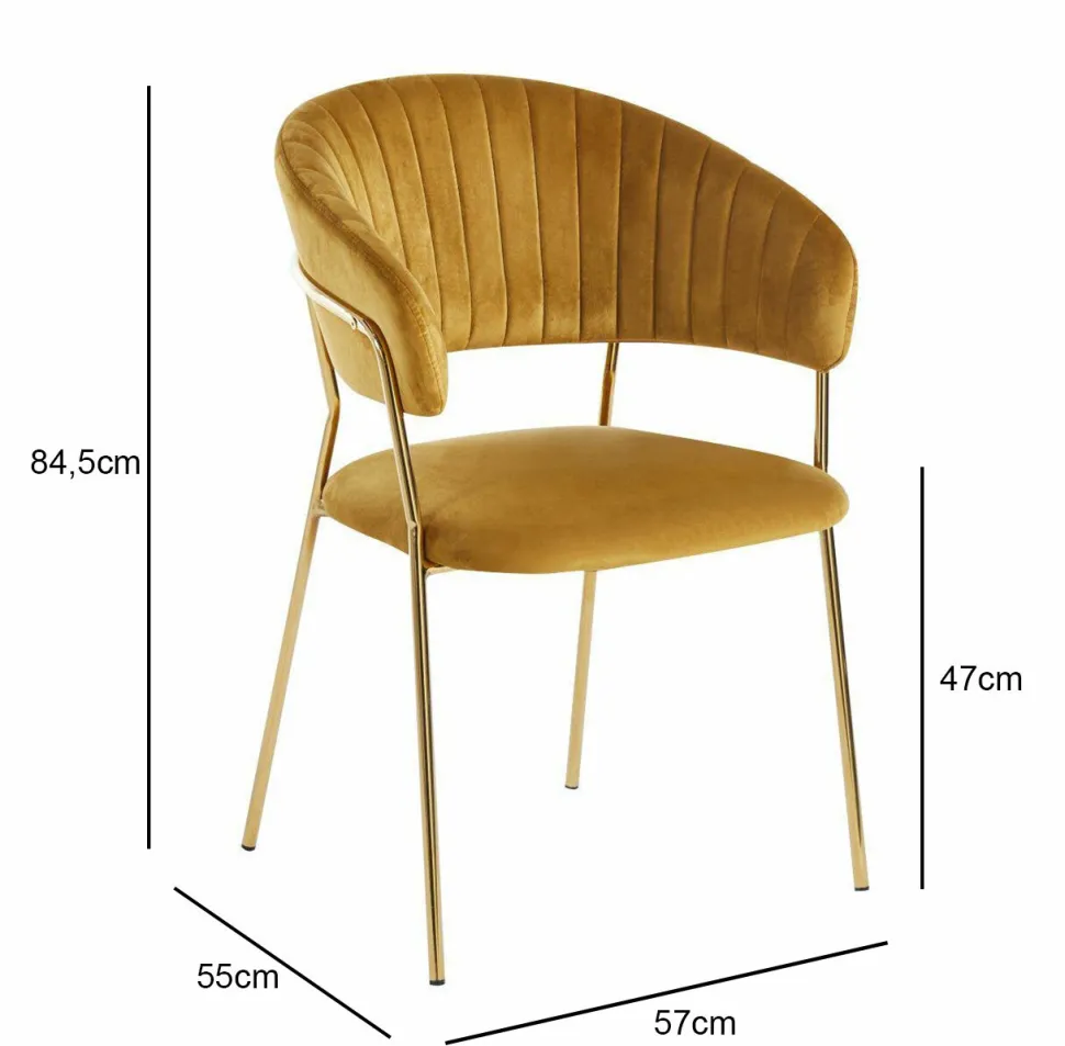 Zrób wrażenie dzięki luksusowemu krzesłu Glamour Velvet. Krzesło to wyróżnia się wyrafinowanym, nowoczesnym designem, luksusową aksamitną tapicerką i modnymi detalami. Wyposażone wnogi z chromu, zachęcającąszerokość 50 cm i wysokość 9 cm między siedziskiem, a oparciem, krzesło to zapewnia maksymalny komfort i styl. Klasyczne żółte siedzisko z elegancką złotą podstawą podkreśli każdy stylowy wystrój domu i nada głębi każdemu pomieszczeniu. Niezależnie od tego, czy szukasz czegoś wyjątkowego do swojego salonu, czy po prostu chcesz dodać odrobinę blaskudo przestrzeni biurowej, krzesło Glamour Velvet ma to wszystko!