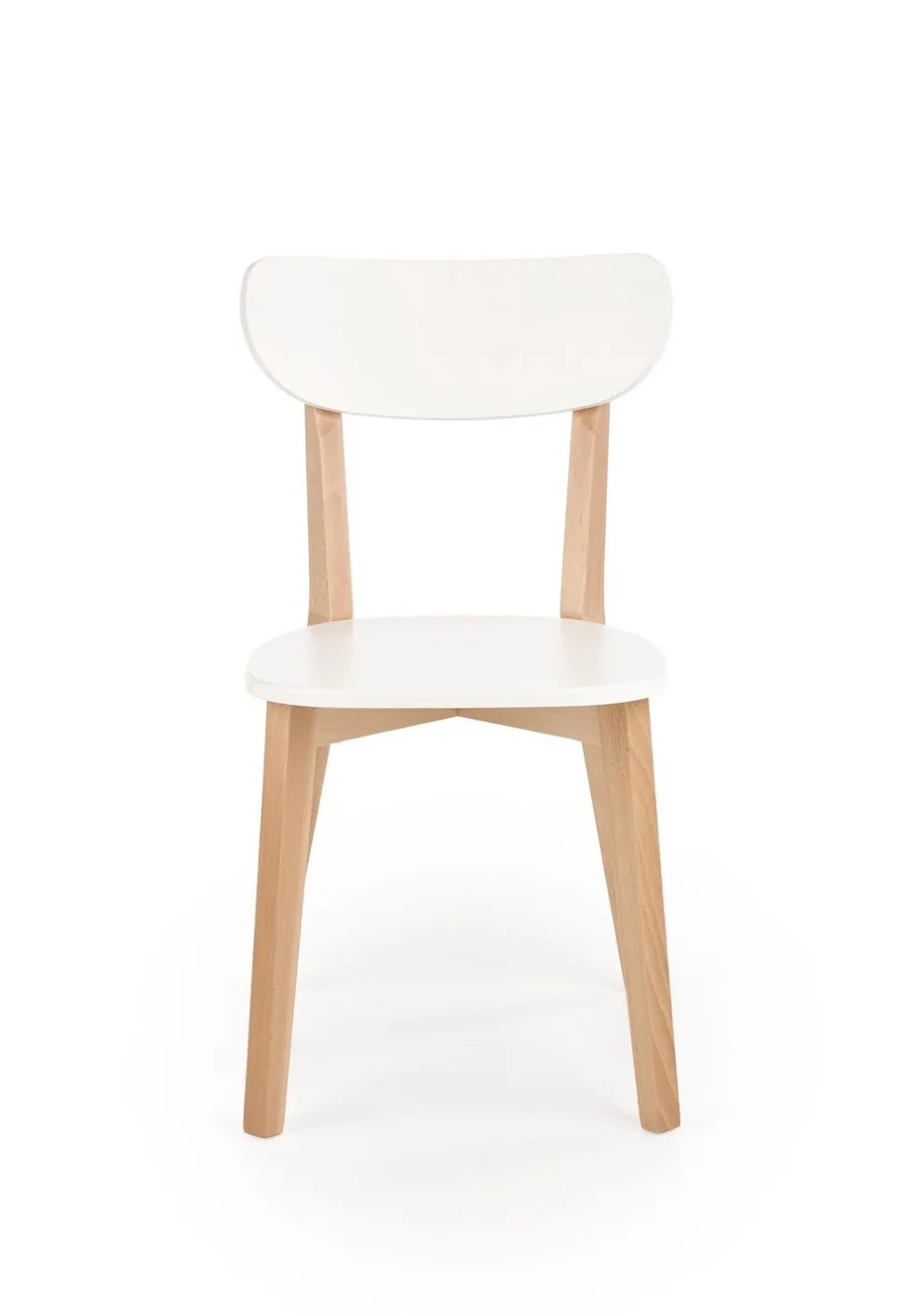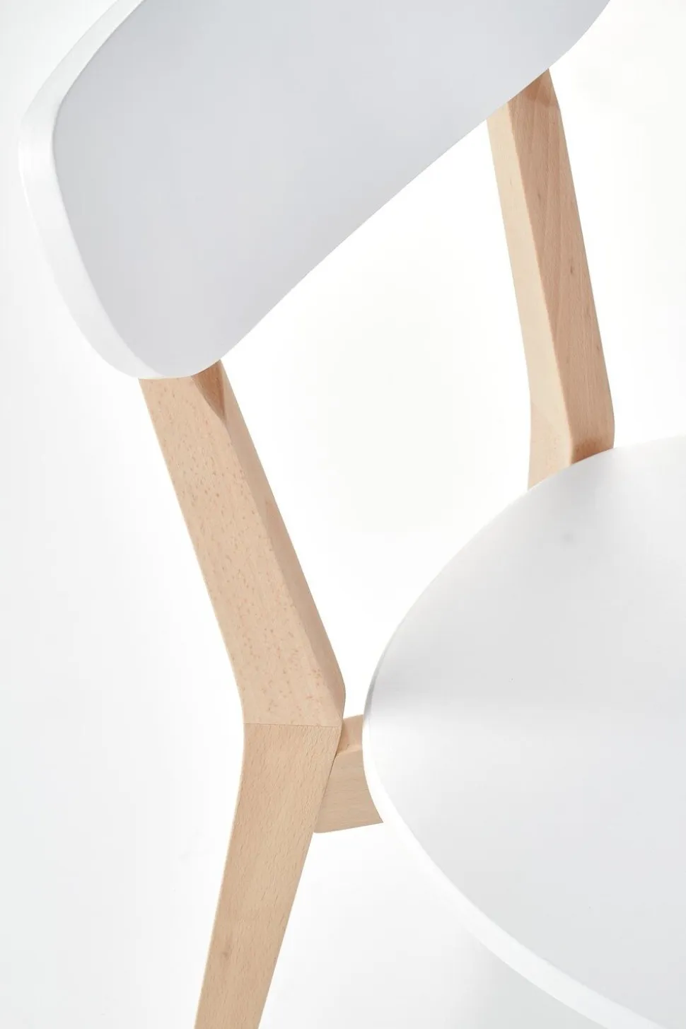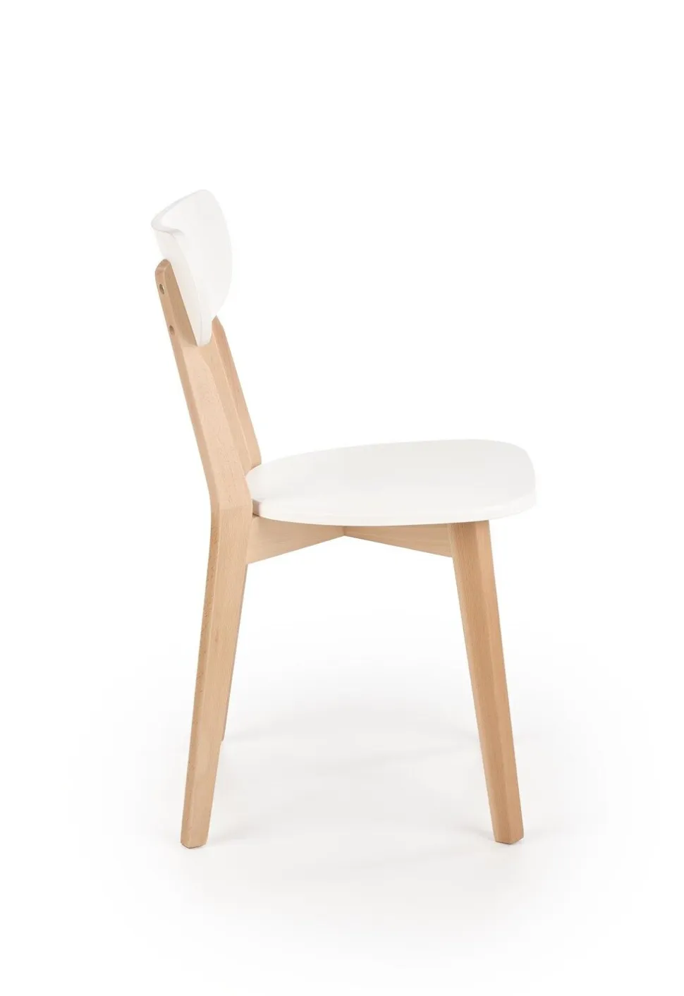 Powierzchnia krzesła została uwydatniona poprzez zastosowanie lakierowanego MDF-u w kolorze białym. To połączenie jasnego drewna z subtelnym, klasycznym białym nadaje meblowi niepowtarzalny charakter. Kolorystyka ta sprawia, że krzesło Guggi doskonale wpisuje się w minimalistyczne aranżacje, dodając im jednocześnie nuty świeżości i delikatności.