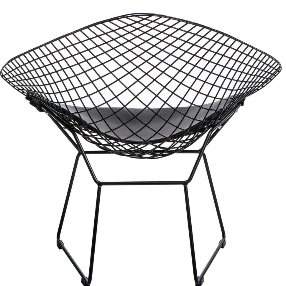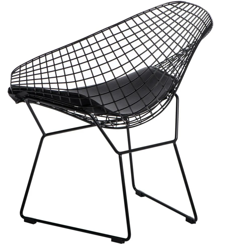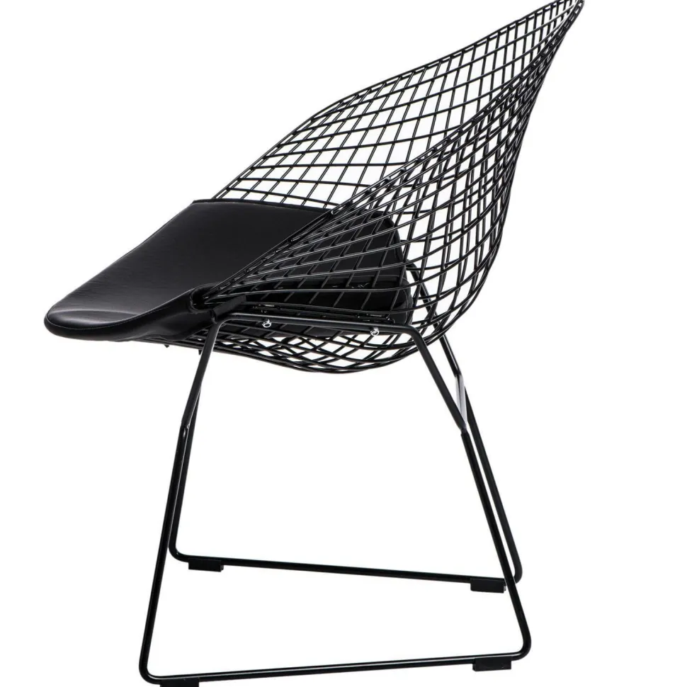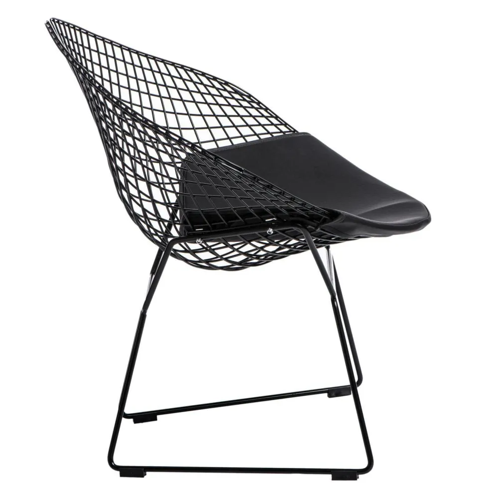 Designerskie krzesło HarryArm to designerska forma, która od lat zachwyca swoim wyglądem. Opływowy kształt sprawia, że krzesło staje się trójwymiarowe. Wykonane z metalu lakierowanego na kolor czarny o wykończeniu w połysku. Poduszka na siedzisku wykonana została ze skóry ekologicznej wykończonej matowo. Poduszkę należy przymocować do siedziska za pomocą rzepów znajdujących się na jej spodzie. Produkt wymaga montażu. Jego maksymalne obciążenie wynosi 120kg. Krzesło w stylu Glamour posiada podłokietniki, podstawą są płozy z nóżkami posiadającymi podkładki.