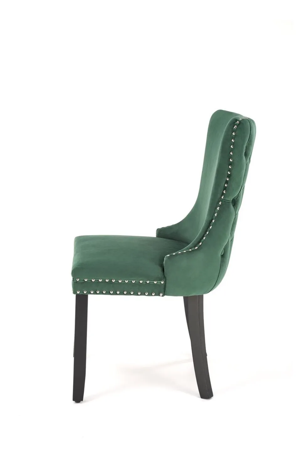 Krzesło Iridionne Velvet w ciemnym zielonym kolorze to połączenie elegancji i wygody, które z pewnością wzbogaci każde wnętrze. Wykonane z wysokiej jakości tkaniny welwet, krzesło przyciąga wzrok swoim luksusowym wyglądem oraz głębokim, ciemnym zielonym odcieniem, który dodaje przestrzeni subtelnej elegancji. Velvet jest materiałem o wyjątkowej miękkości i gładkości, co sprawia, że każde siedzenie na tym krześle jest prawdziwą przyjemnością.