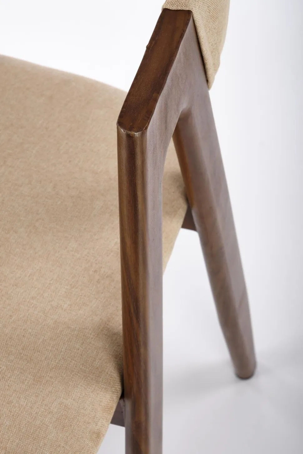 Komfortowe oparcie i siedzisko krzesła zostały obite wysokiej jakości tkaniną w przyjemnym beżowym kolorze, której tekstura dodaje krzesłu elegancji. Podstawa wykonana ze stali pomalowanej tak, aby imitowała naturalne, ciemne drewno, dodaje wnętrzu przytulności i ciepła. Krzesło Island posiada również oryginalne podłokietniki, które są przedłużeniem nóg krzesła, co tworzy unikalny efekt nowoczesnego designu.