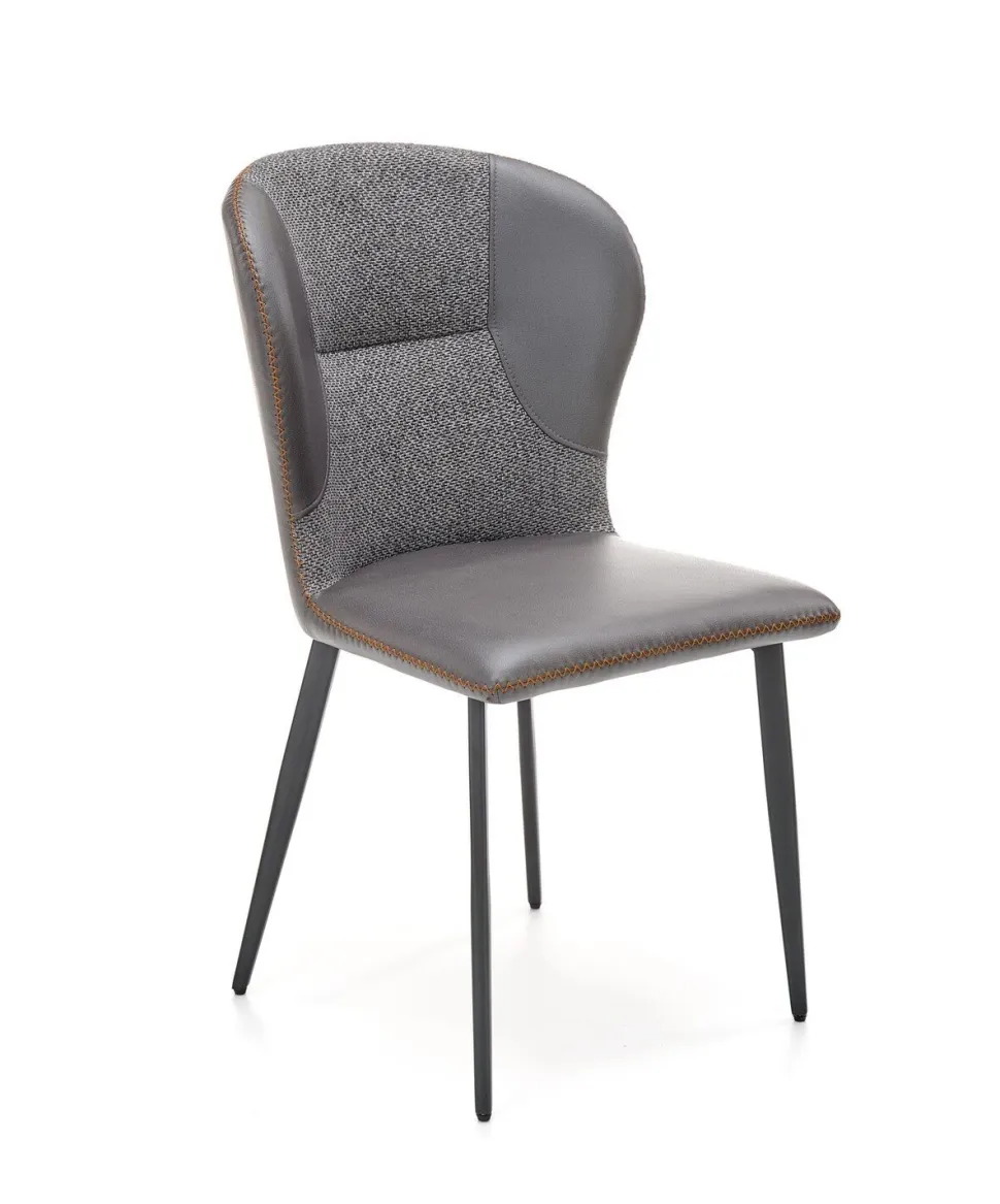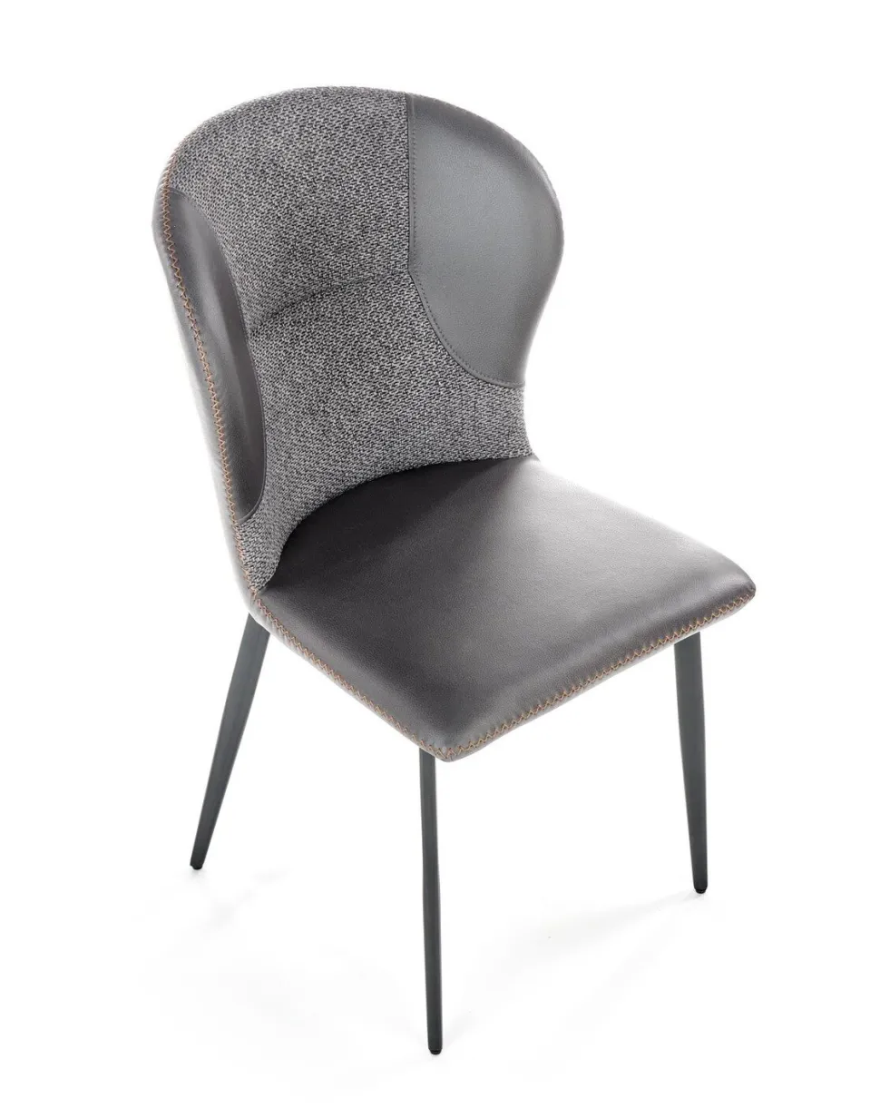 Ekoskóra i tkanina w ciemnym popielatym kolorze, ozdobione widocznymi przeszyciami, nadają mu niepowtarzalny charakter. Natomiast stalowa, proszkowo malowana podstawa w kolorze czarnym dodaje mu industrialnego uroku. Krzesło Josephin doskonale sprawdzi się w różnych pomieszczeniach. Jego nowoczesny styl idealnie wpisuje się w trendy wnętrzarskie, dodając im wyjątkowego charakteru. Może być doskonałym uzupełnieniem kuchni, jadalni, salonu czy biura. Dzięki swojej uniwersalności, krzesło Josephin doskonale komponuje się zarówno z nowoczesnymi, minimalistycznymi aranżacjami, jak i z bardziej klasycznymi wnętrzami.