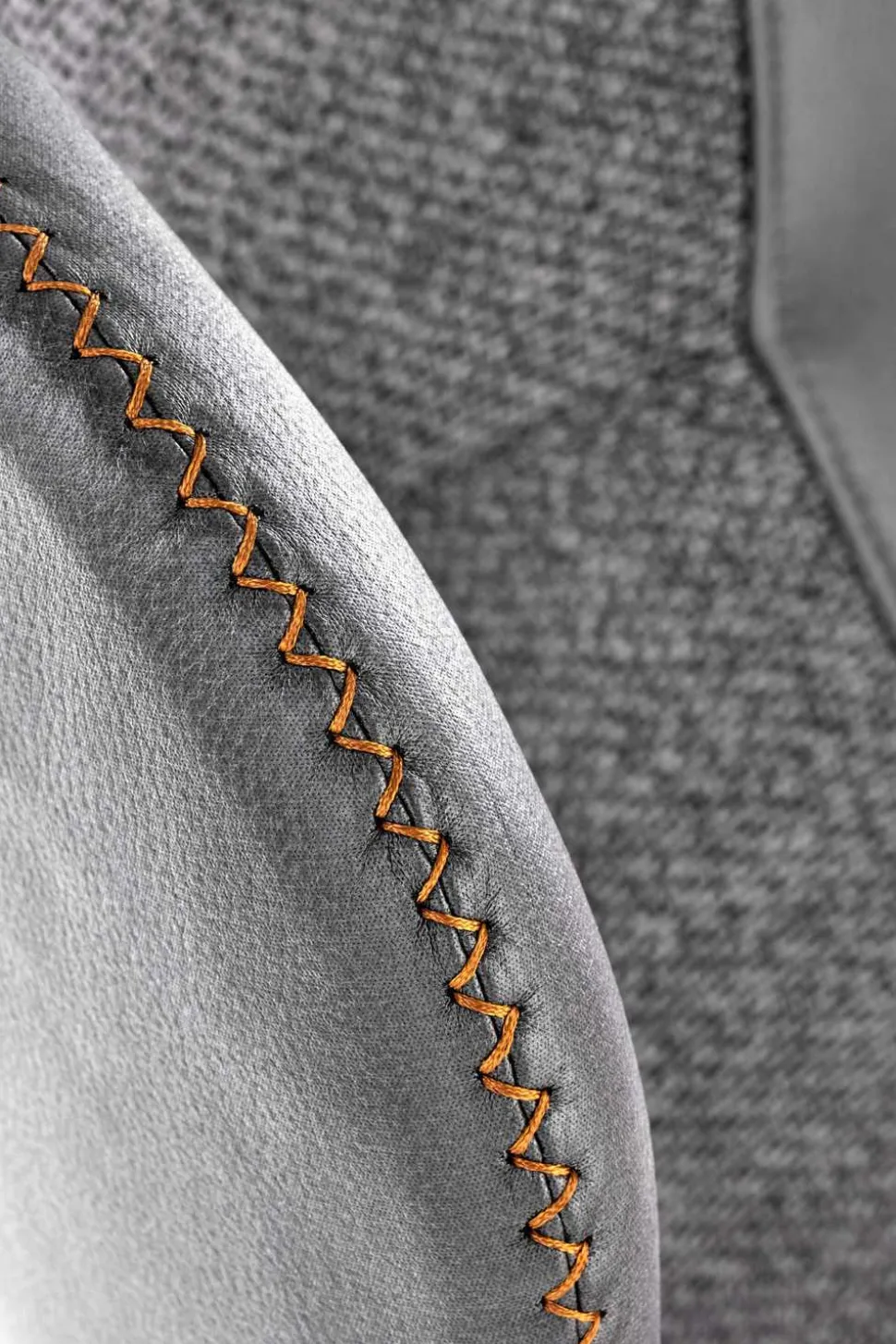 - Wygodne siedzisko i oparcie, obite ekoskórą i szarą tkaniną