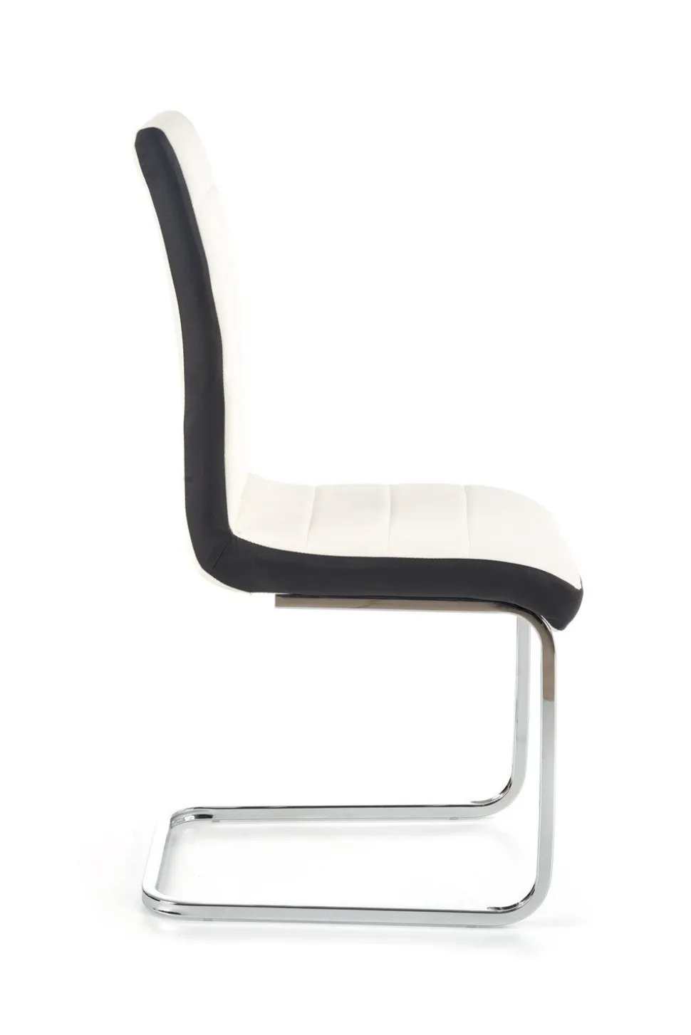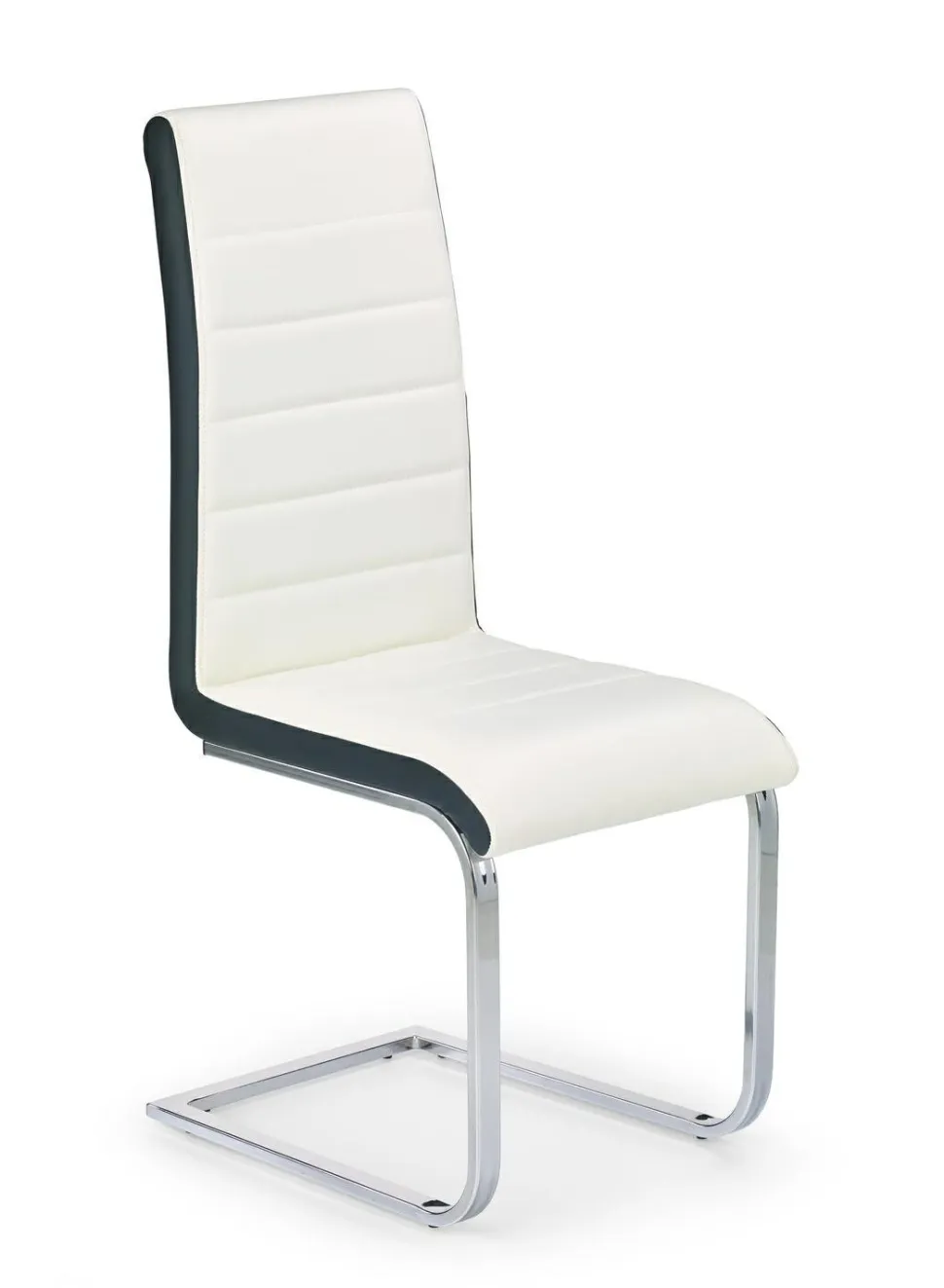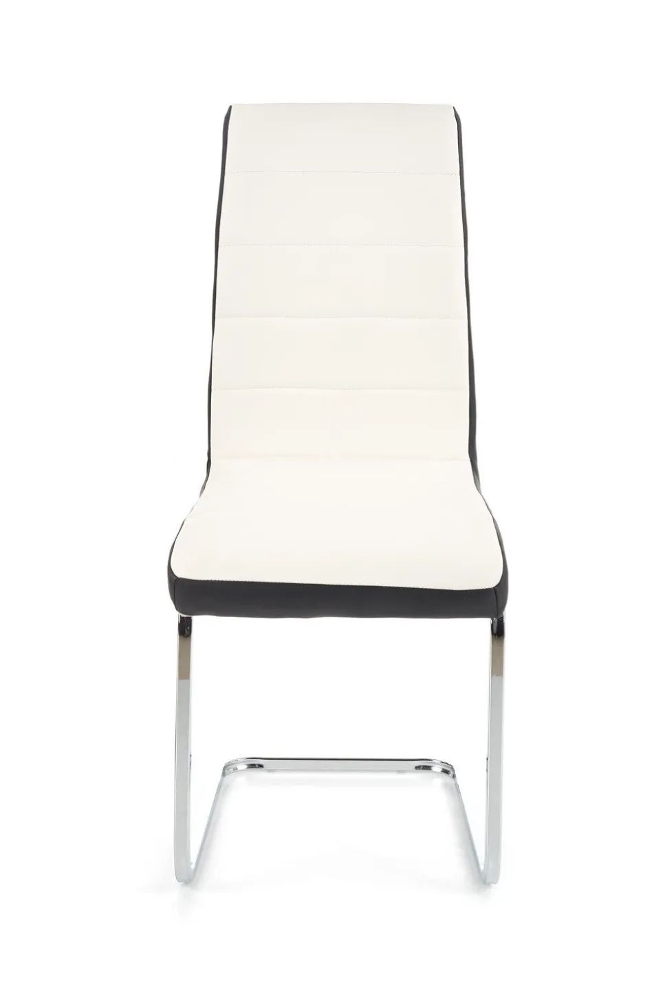 Krzesło Karis to wyrafinowane połączenie elegancji i klasyki. Jego konstrukcja opiera się na stalowych, chromowanych nogach, które nadają mu nowoczesny wygląd i trwałość. Skórzane siedzisko oraz oparcie w kolorze białym, otoczone czernią po bokach, tworzą efektowny kontrast, podkreślając wyjątkowy charakter krzesła.