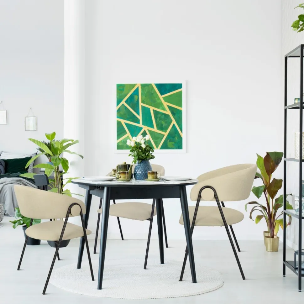 Możesz mieć pewność, że spędzanie czasu na tym krześle będzie czystą przyjemnością.Solidność i stabilność to kolejne atuty krzesła Larisa. Metalowe nogi, pomalowane proszkowo na czarny kolor, gwarantują trwałość i pewność podczas korzystania z krzesła. Nie musisz martwić się o jego wytrzymałość, nawet jeśli używasz go codziennie przez wiele lat.Wygoda to kluczowy element, na który zwracano uwagę podczas projektowania krzesła Larisa. Dzięki uzupełnieniu pianką tapicerską, krzesło doskonale dopasowuje się do ciała, zapewniając optymalne wsparcie dla pleców.