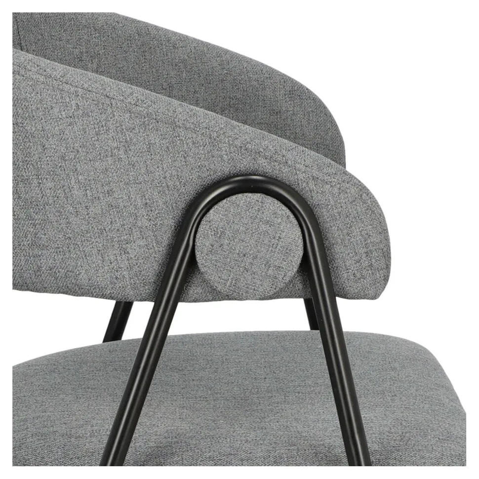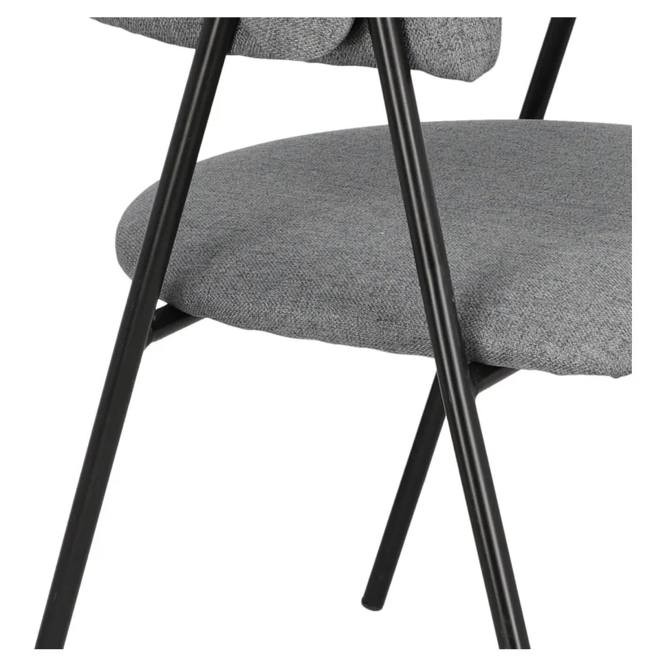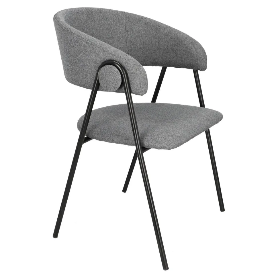 - Krzesło Larisa jest tapicerowane przyjemną w dotyku, szarą tkaniną, która zapewnia wygodę podczas siedzenia