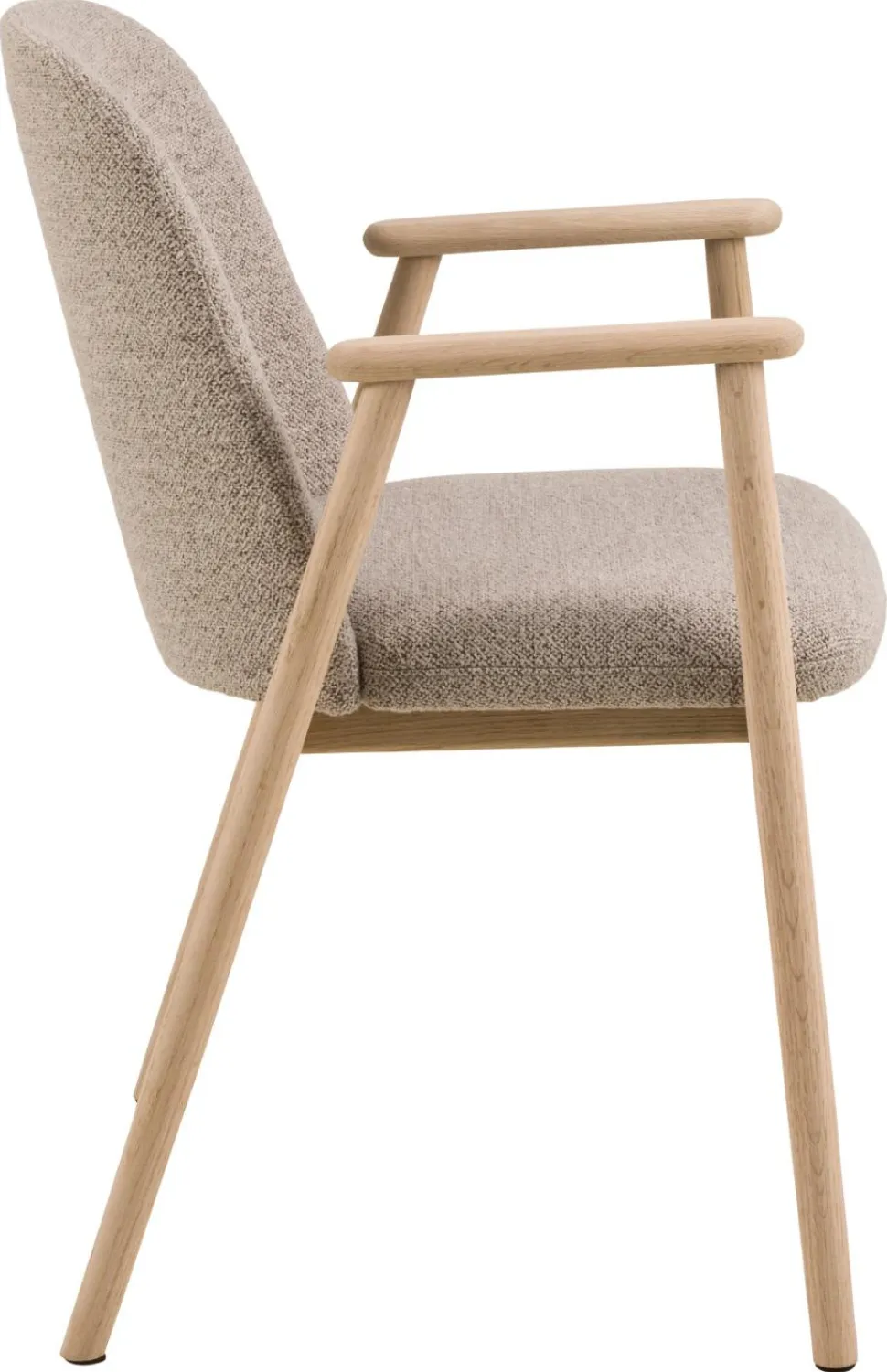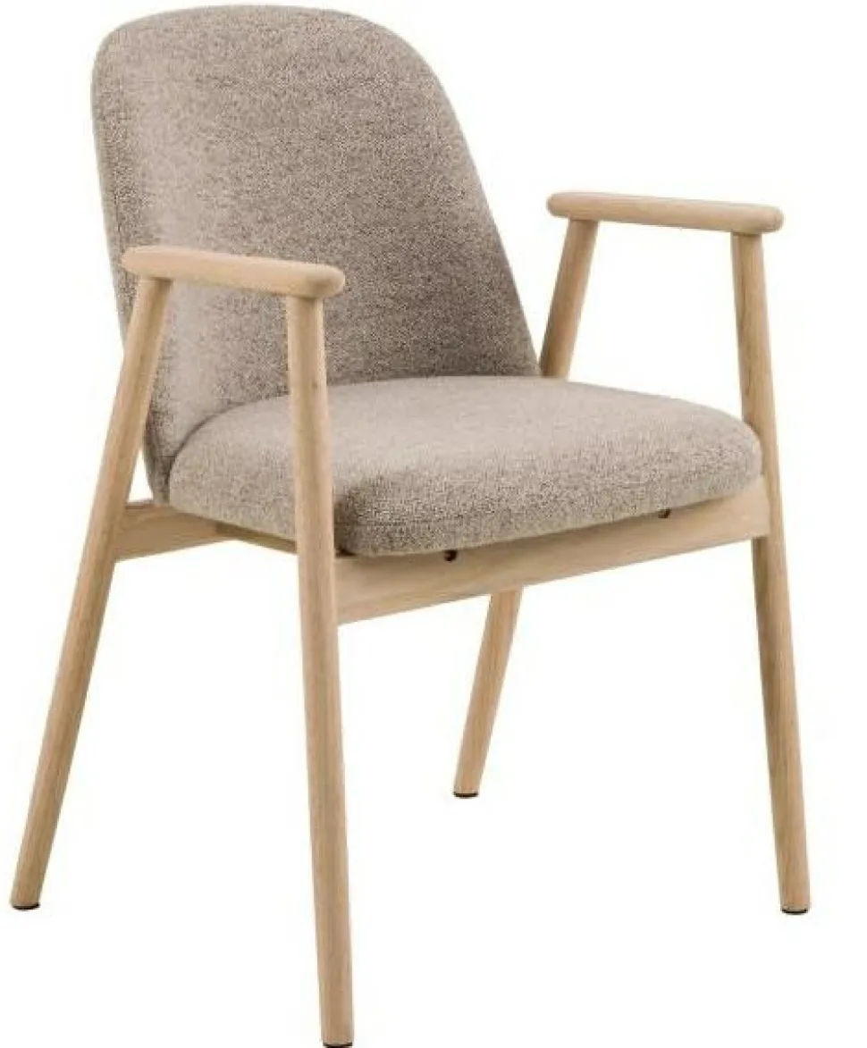 Krzesło Leo beżowe/ dąb Monza 60 to wyjątkowe połączenie skandynawskiej elegancji i nowoczesności. Jego beżowe siedzisko, tapicerowane tkaniną bouclé o luksusowej kręconej strukturze, wraz z podłokietnikami, nadaje wnętrzu wyjątkowy charakter. Dodatkowo, rzeźbiarski kształt krzesła, podkreślony smukłymi nogami z dębu, sprawia, że każda jadalnia nabierze wyjątkowego uroku.