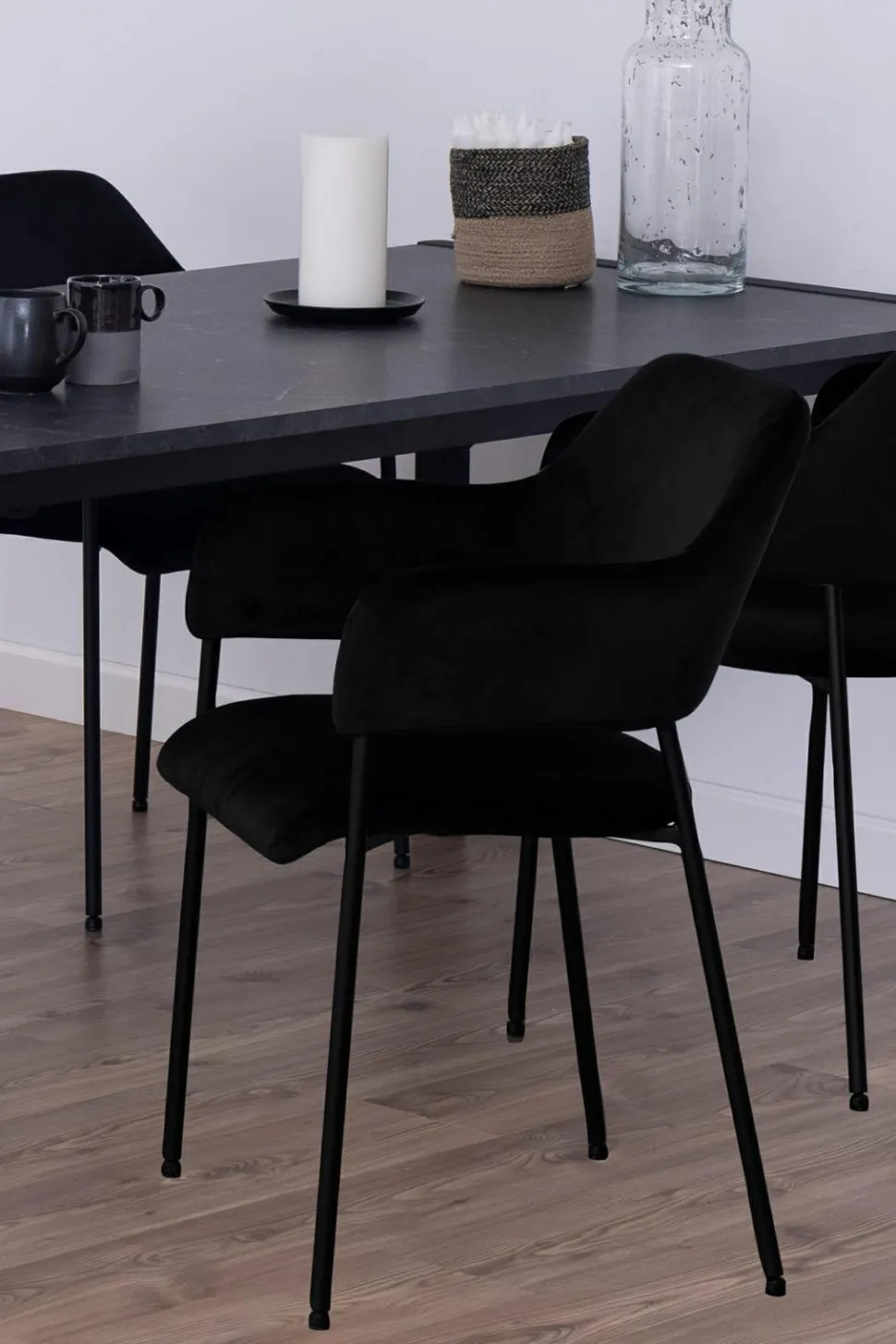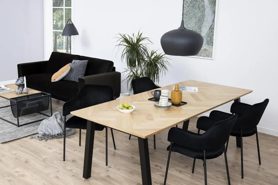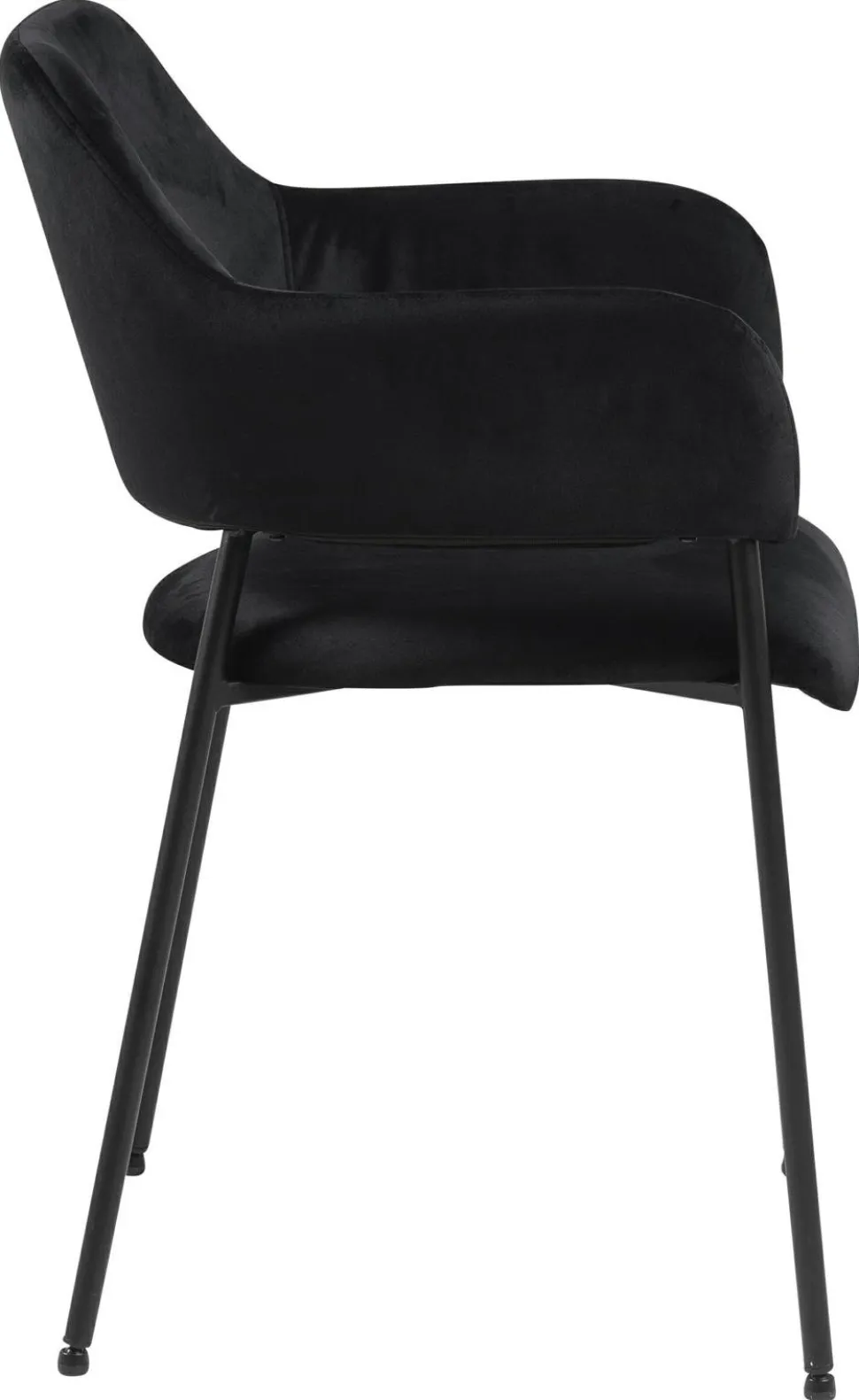 Krzesło z podłokietnikami Lima to elegancki model o bardzo modnym kształcie siedziska, przypominającym siedziska z lat 60. Jednak jego forma idealnie wpasuje się nie tylko w aranżacje vintage, ale stanie się także ciekawym dodatkiem do wnętrz nowoczesnych, minimalistycznych czy skandynawskich. Podstawa krzesła to cztery metalowe nogi o smukłym kształcie. Nóżki od spodu zabezpieczono nakładkami, aby uniknąć rysowania się podłogi drewnianej lub gresu. Siedzisko natomiast zostało wypełnione elastyczną pianką poliuretanową, gwarantującą niebywałą miękkość. Tapicerowane siedzisko obito tkaniną Dublin fabric black 50. Mebel posiada podłokietniki wyprofilowane wraz z oparciem z jednego elementu. Lima to perfekcyjne krzesło dojadalni, biura czy restauracji.