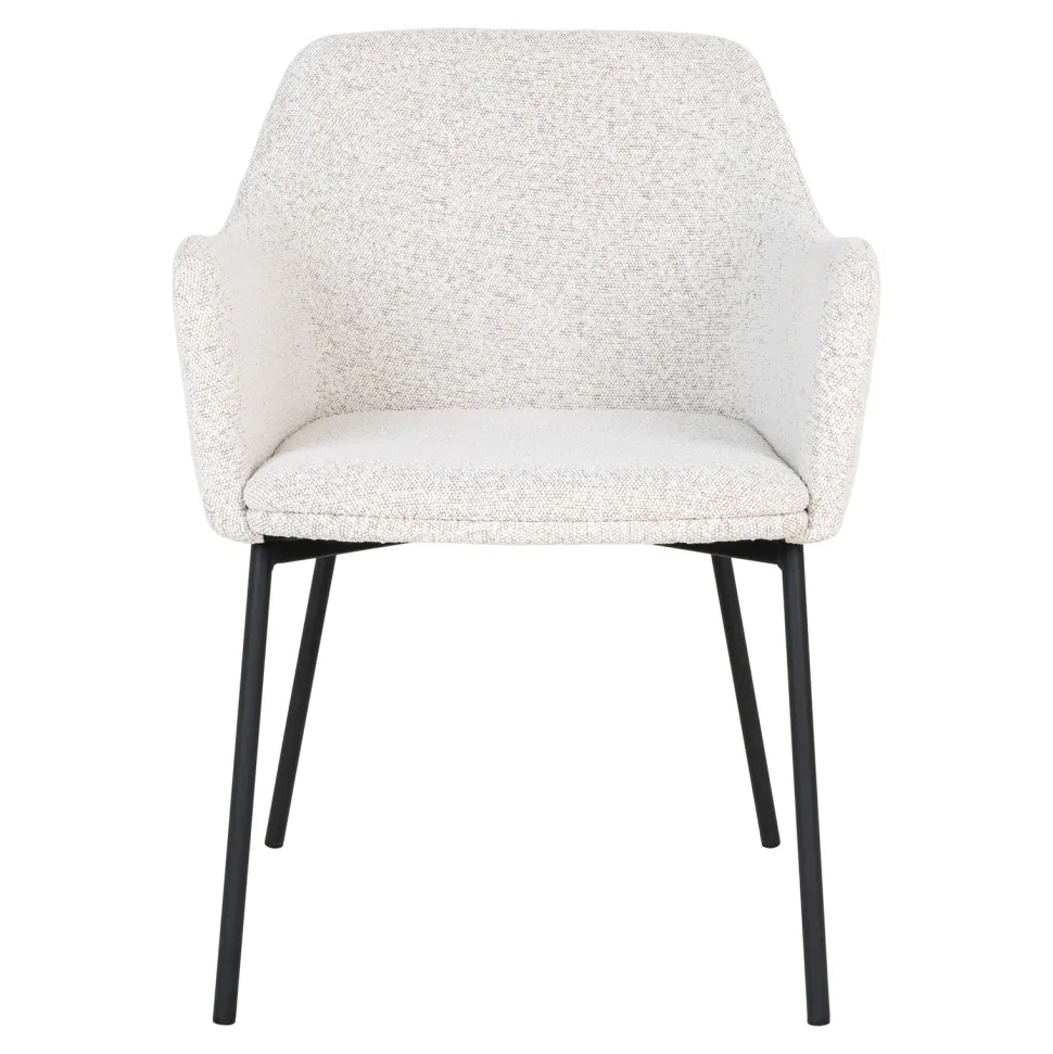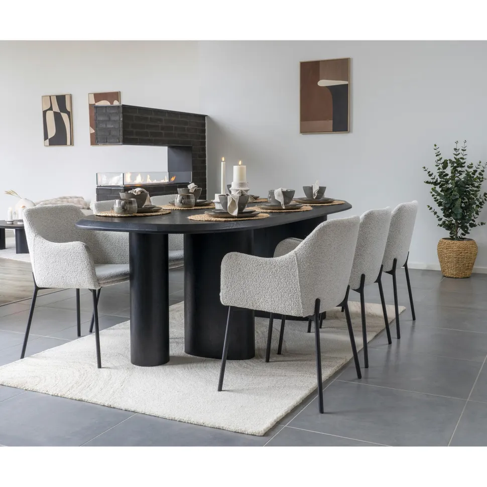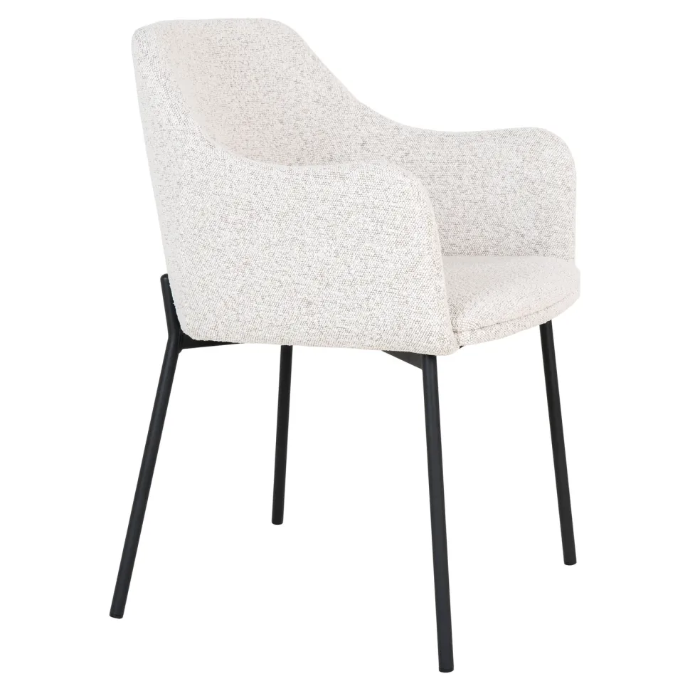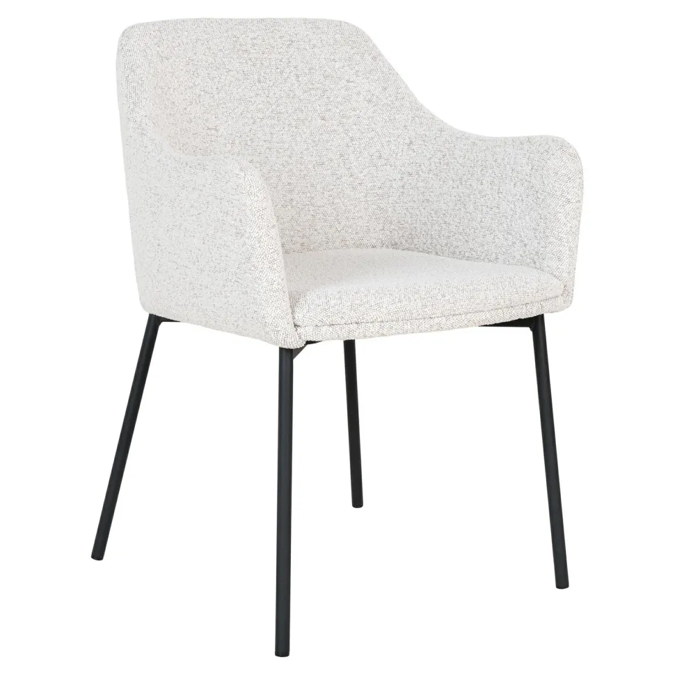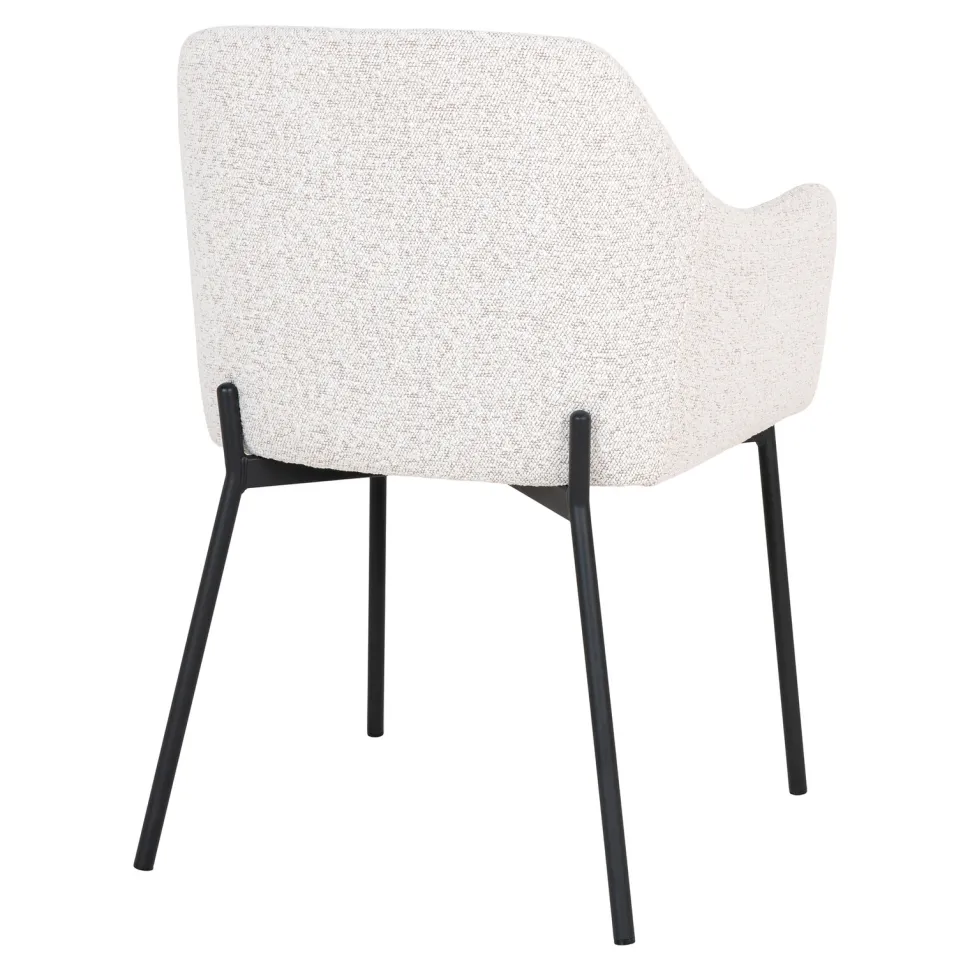 Krzesło Melilla to stylowy i komfortowy mebel, który z łatwością wpasuje się w każde wnętrze. Wykonane z wysokiej jakości materiałów, takich jak stal, poliester i sklejka, zapewnia długotrwałość i trwałość. Tapicerka z tkaniny boucle w kolorze białym dodaje mu elegancji, a czarne metalowe nogi – stabilności. To krzesło jest idealne nie tylko do domu, ale także do kawiarni czy restauracji.