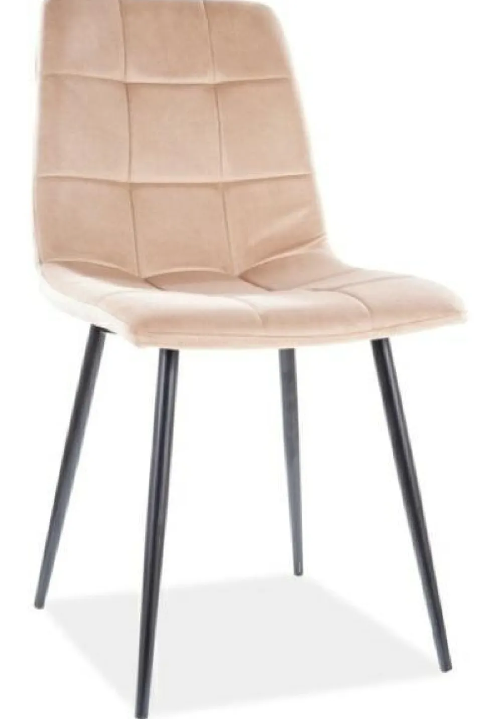 Krzesło Intesi Mello to połączenie niezwykle miękkiej tkaniny welwetowej i metalowych, minimalistycznych nóg. Czarne, malowane proszkowo nogi są wykonane z metalu. Cylindryczny kształt nóg lekko zwęża się w najniższej części mebla. Na uwagę zasługuje ciekawe, minimalistyczne siedzisko krzesła. Siedzisko i oparcie tworzą jedną całość, przez co krzesło jest niezwykle delikatne w swojej formie. Brak podłokietników sprawia, że krzesła mogą być umieszczone przy każdym stole.