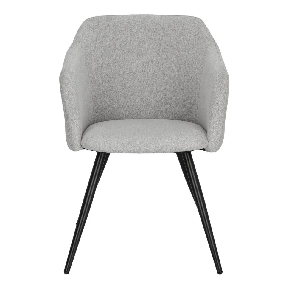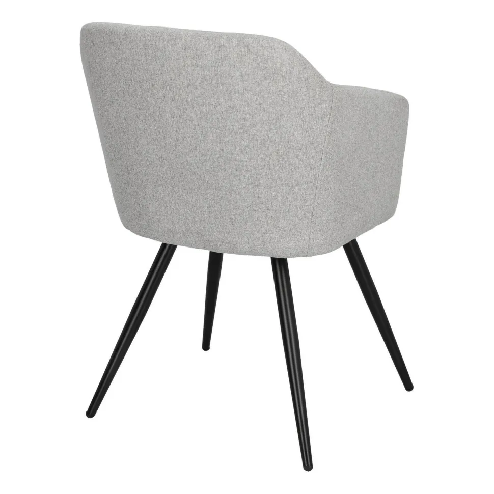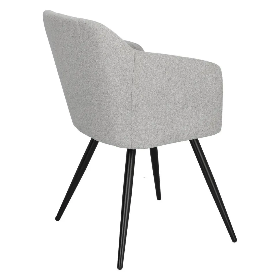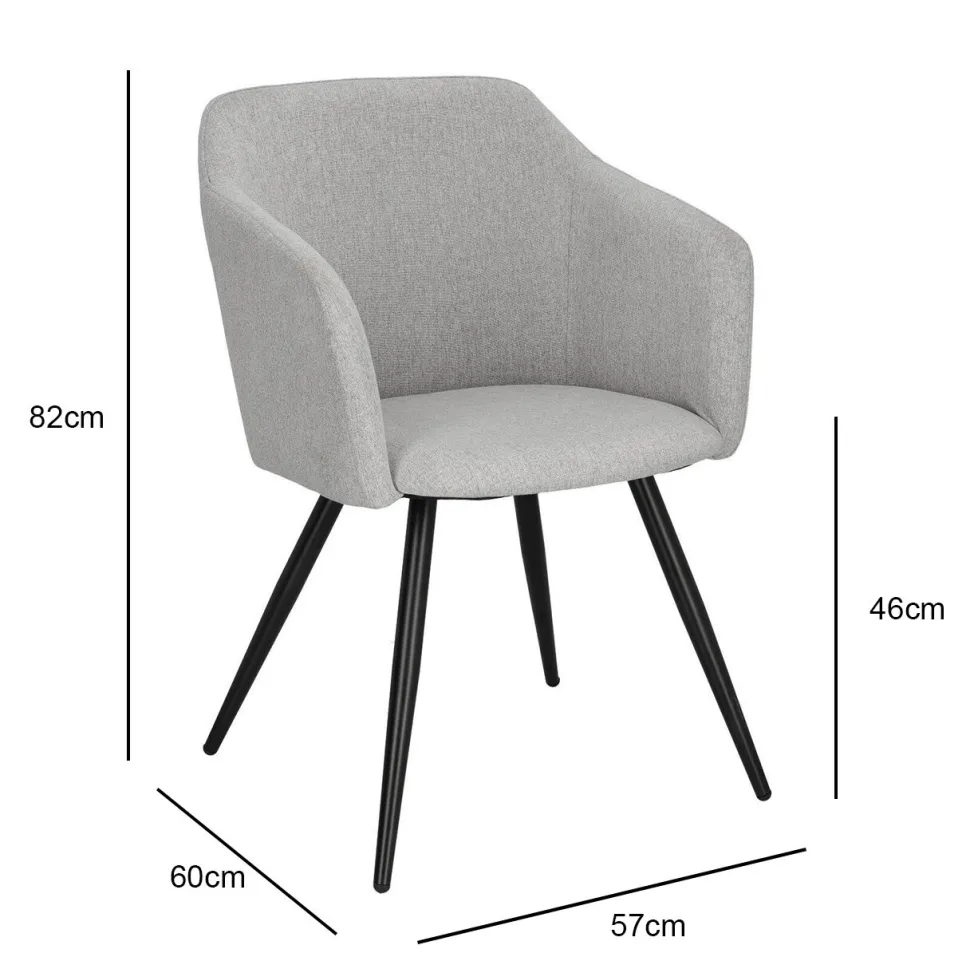 Krzesło Molto tapicerowane elegancką szarą tkaniną to przykład klasycznego designu, który świetnie odnajdzie się w różnorodnych aranżacjach. Posiada ono niezwykle wygodne siedzisko z szerokim oparciem i podłokietnikami, a także miękką poliestrową tapicerkę, która zapewnia dodatkowy komfort. Ciekawa kubełkowa forma krzesła tapicerowanego Molto idealnie współgra ze smukłymi, lecz wytrzymałymi nogami o grubości 3,5 cm. Podstawa to łatwa do utrzymania w czystości konstrukcja z metalu w kolorze czarnym. Dodatkowo nogi wyposażone zostały w nakładki, które chronią podłogę przed zarysowaniem. Eleganckie szare krzesło o wymiarach 42 cm x 82 cm x 60 cm (głębokość siedziska: 46 cm) będzie doskonałym wyborem do wnętrz w stylu skandynawskim.