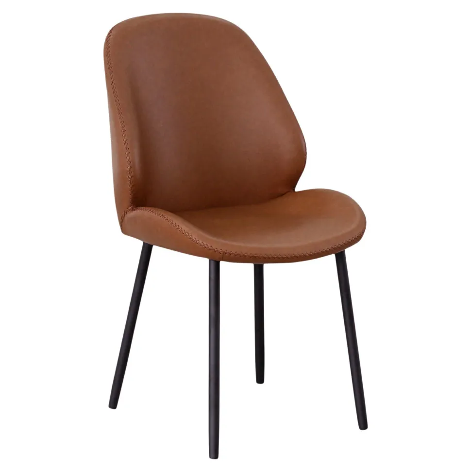 Krzesło Monte Carlo od Intesi to połączenie wytrzymałości i stylu. Posiada cztery mocne nogi wykonane z metalu, które są malowane proszkowo na kolor czarny. Ten szczegół dodaje mu nie tylko stabilności, ale również elegancji. Siedzisko krzesła jest obite eko skórą w kolorze brązowym, co nadaje mu wyjątkowego, vintage charakteru. Idealnie wpasuje się w przestrzeń salonu, jadalni czy biura, dodając im ciepła i przytulności.