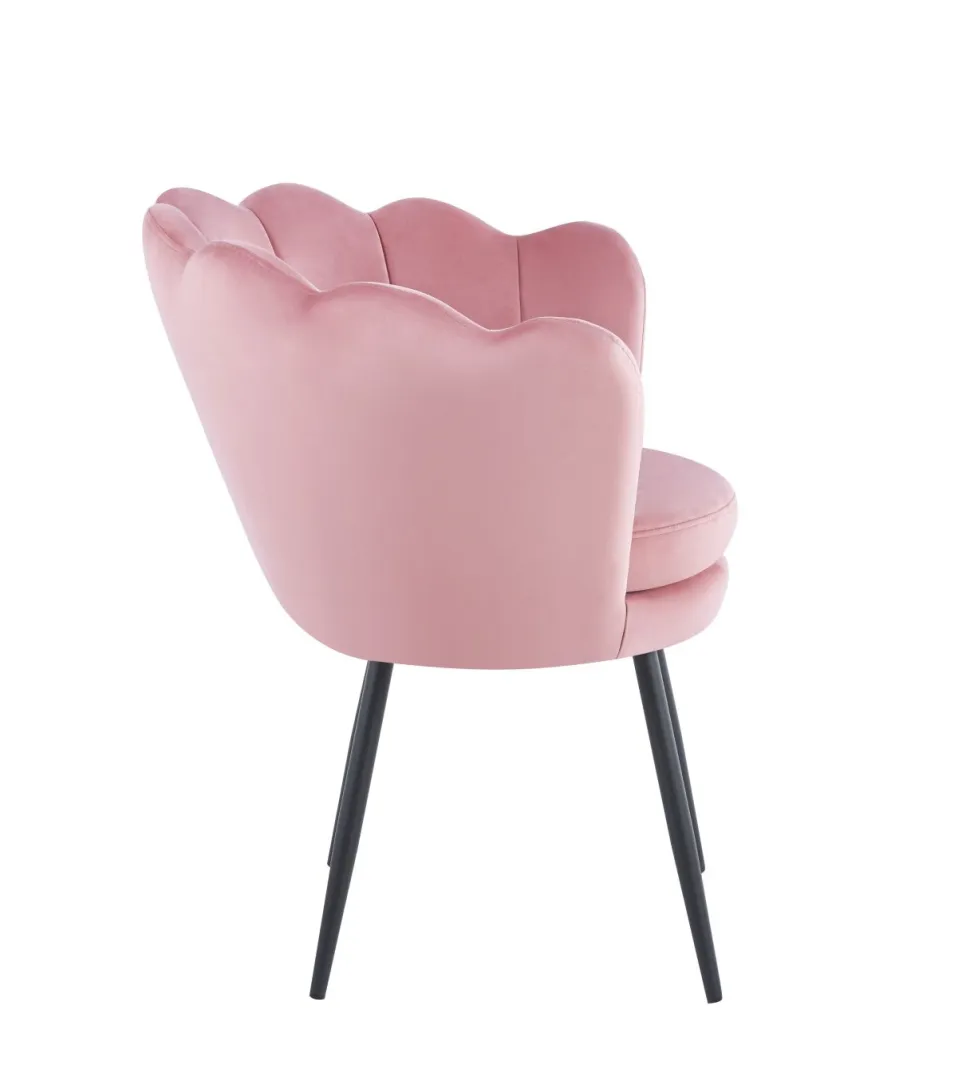Krzesło muszelka Fiona VIC w kolorze różowym jasnym z czarnymi nogami to połączenie nowoczesnego wzornictwa z wygodą użytkowania. Dzięki swojej ergonomicznej konstrukcji zapewnia komfortowe podparcie pleców i optymalne ułożenie ciała. Miękka tapicerka z weluru na siedzisku dodaje mu elegancji i przytulności, jednocześnie będąc łatwą w czyszczeniu.