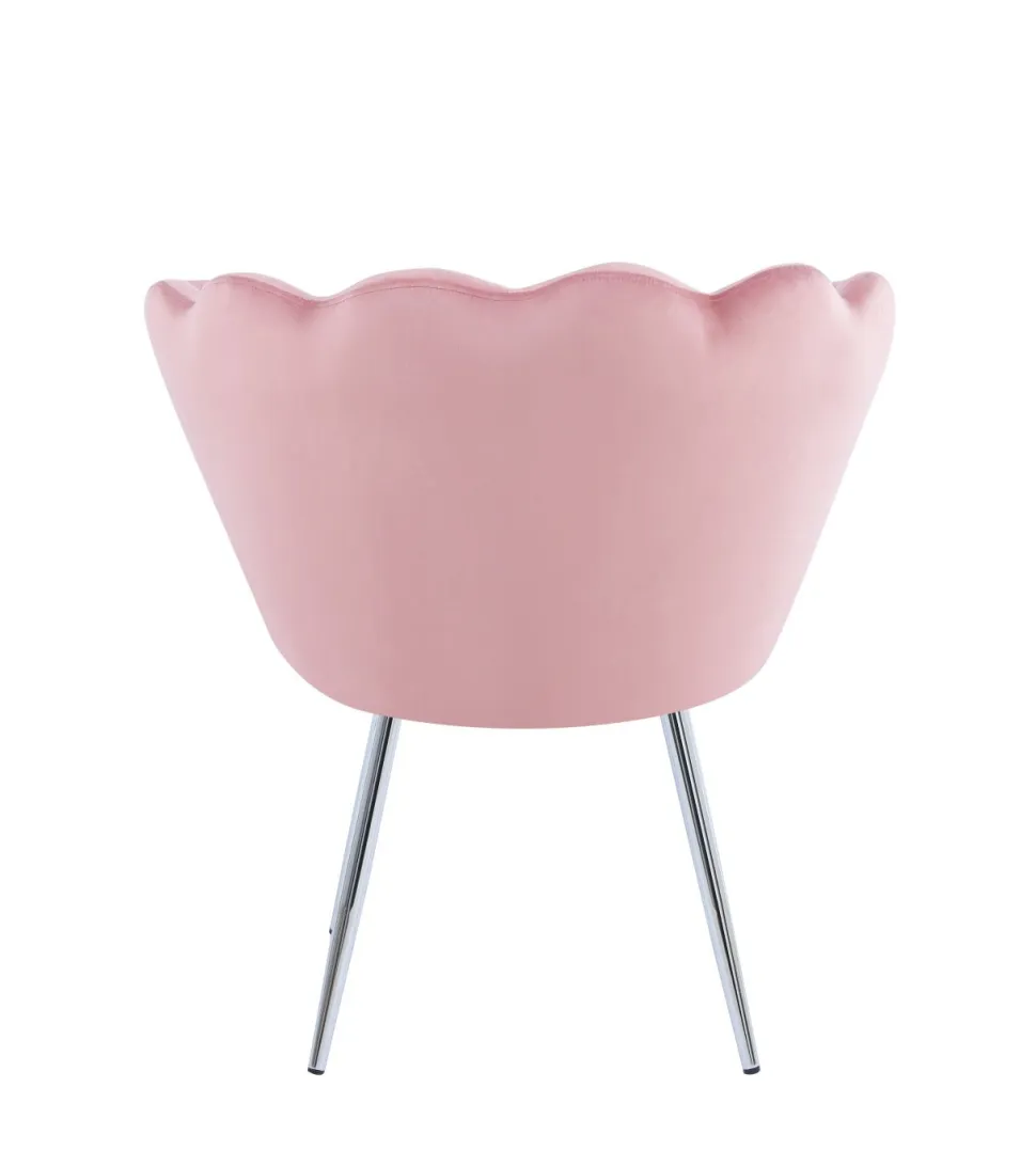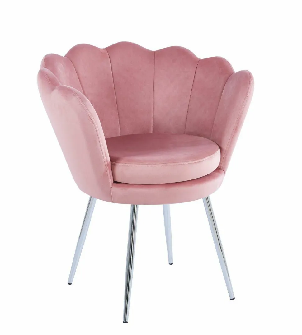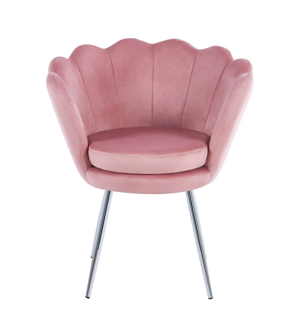 Krzesło muszelka Fiona VIC to doskonałe połączenie nowoczesnego designu, wygody i solidności wykonania. Jego wyjątkowy kształt oraz jasnoróżowe siedzisko wykonane z miękkiego weluru nadają pomieszczeniu subtelny, elegancki akcent.
