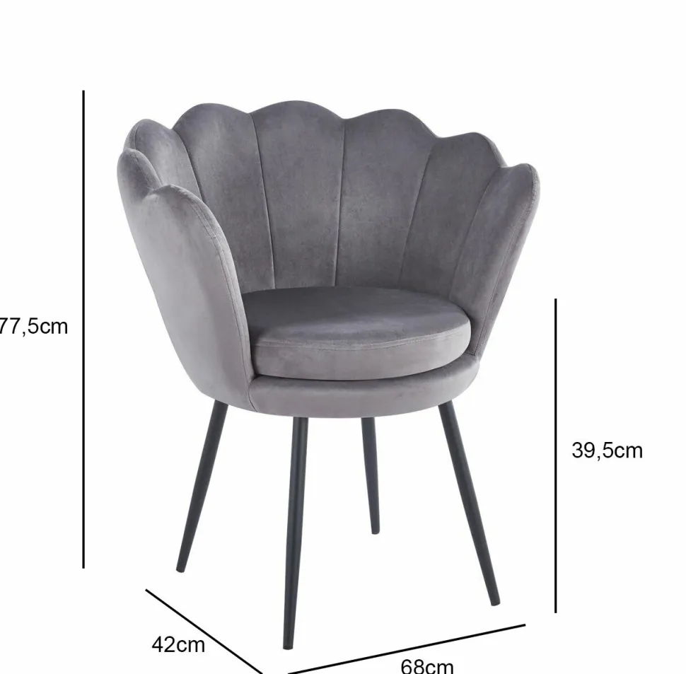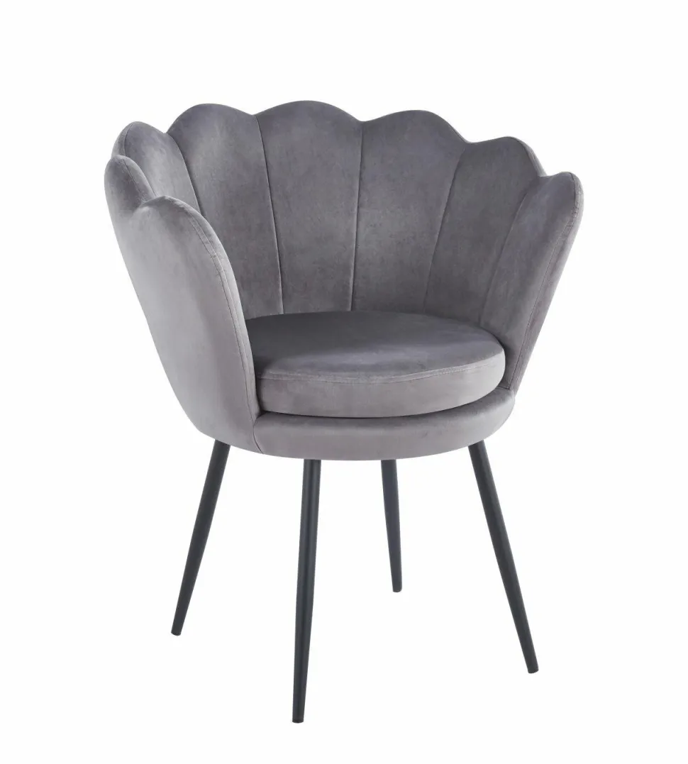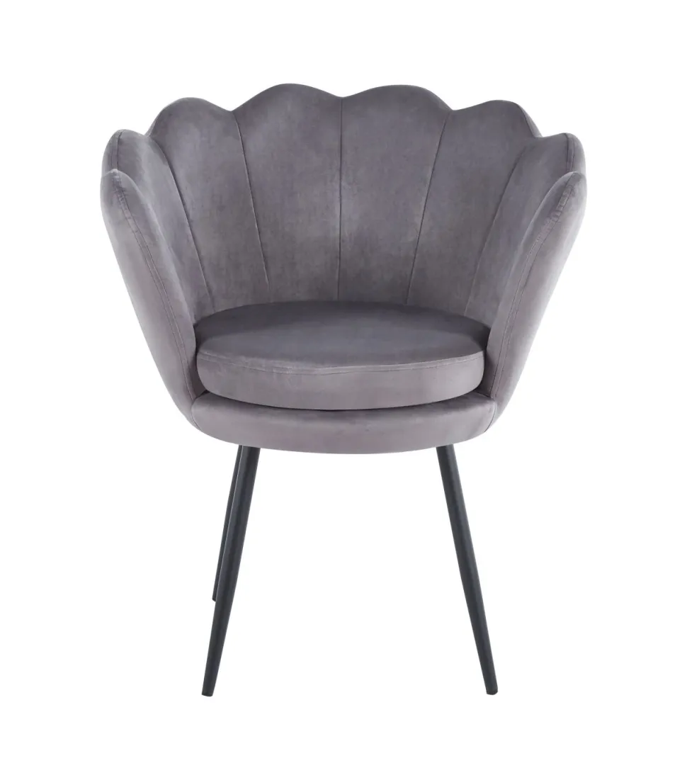 Krzesło muszelka Fiona VIC w szarym odcieniu z czarnymi nogami to wyraziste połączenie nowoczesnego designu i funkcjonalności. Jego elegancka forma muszli oraz delikatna, a zarazem wytrzymała tapicerka z weluru stanowią doskonałe dopełnienie dla każdego pomieszczenia. Dzięki solidnej konstrukcji z chromowanymi nogami, krzesło zapewnia stabilność i trwałość przez wiele lat użytkowania.