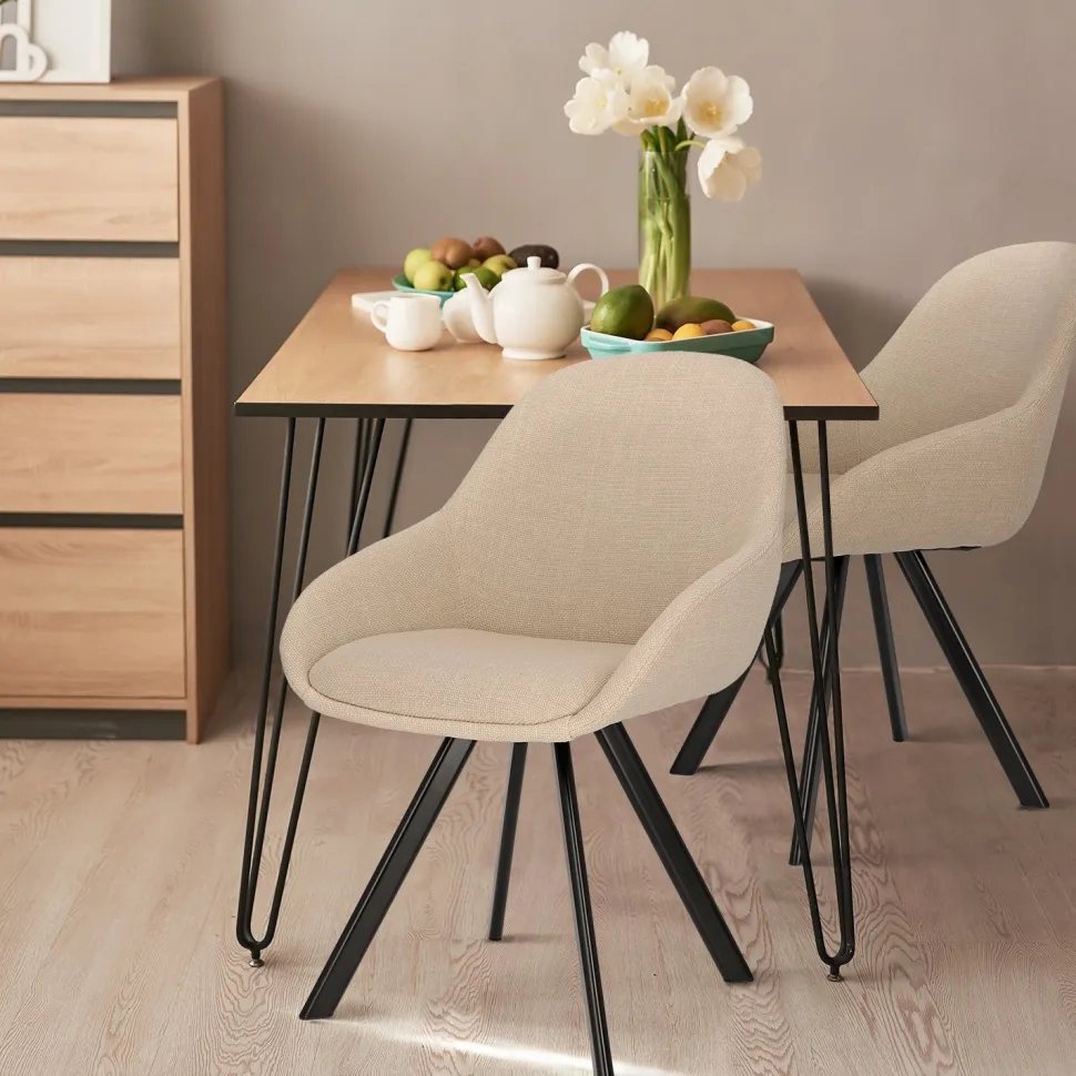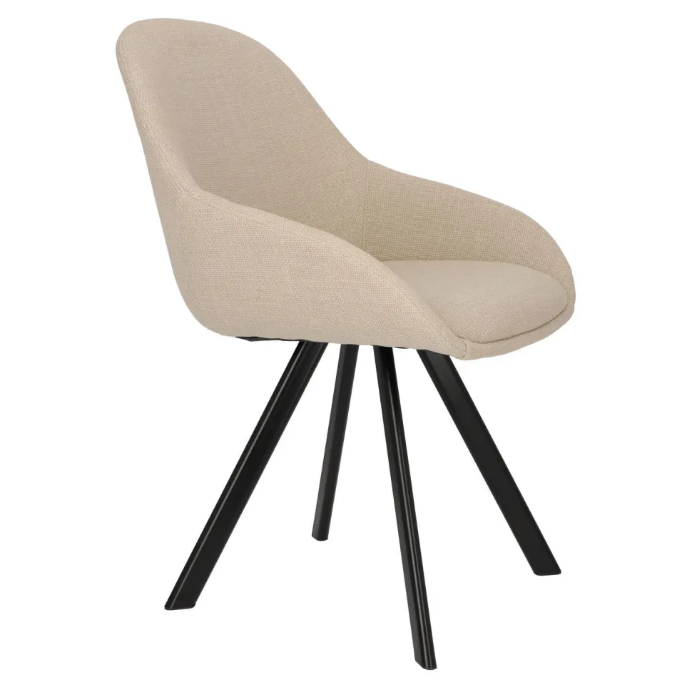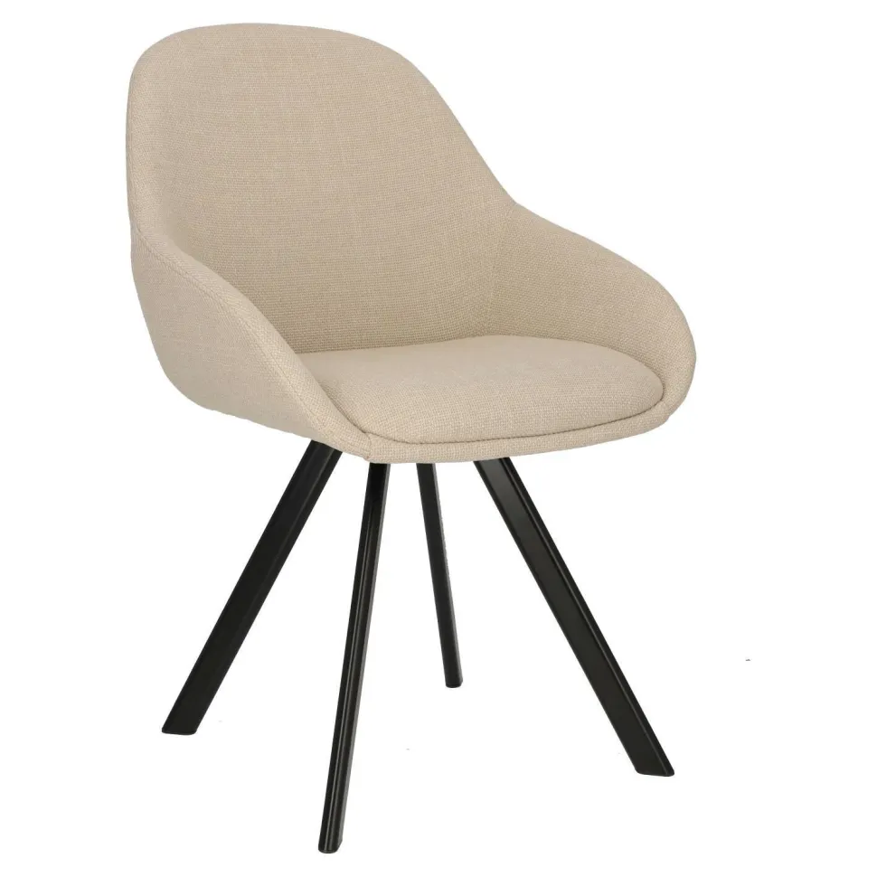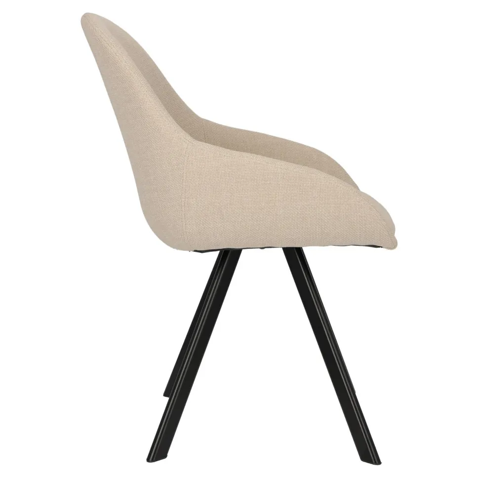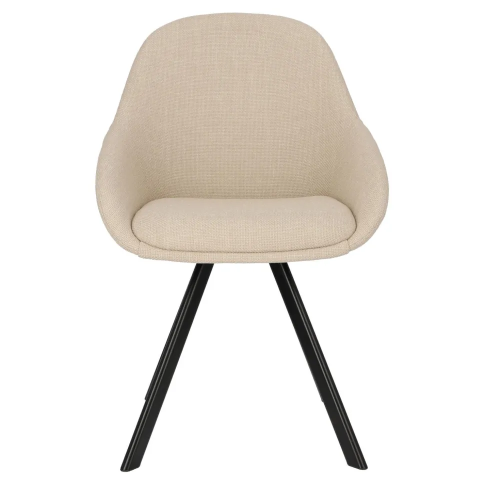 Krzesło Nels to idealne połączenie stylu, wygody i trwałości. Dzięki beżowej, grubo tkanej tkaninie Fabb Bjorn 24, której wysoka jakość jest gwarancją długotrwałego użytkowania, będziesz cieszyć się tym krzesłem przez wiele lat. Ciepły odcień beżu sprawia, że wnętrza stają się przytulne i pełne harmonii.Metalowe, czarne nogi krzesła dodają mu eleganckiego, nowoczesnego charakteru. Ich ciekawy kształt oraz lekkie rozchylanie na boki zapewniają stabilność i wytrzymałość konstrukcji. Dodatkowo, krzesło jest wyposażone w podłokietniki, co gwarantuje maksymalny komfort podczas siedzenia.