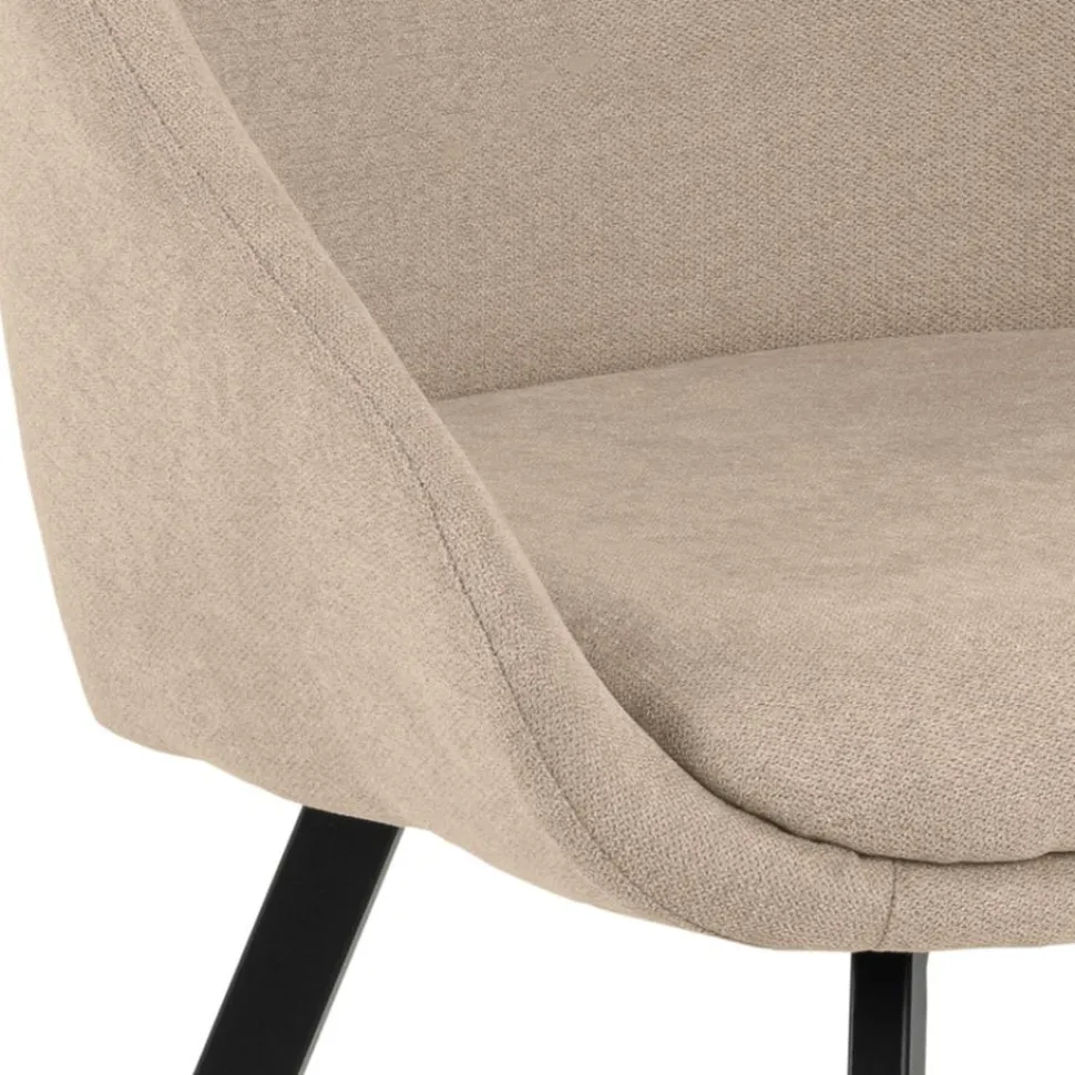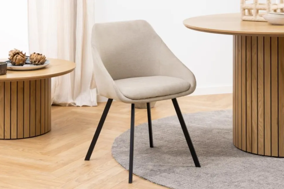 Podstawę krzesłastanowiącztery czarne nogi z malowanego proszkowo metalu. Rozchodząc się delikatnie na boki polepszają stabilność krzesła. Nogi od spodu zabezpieczone sąspecjalnymi nakładkami, które zapobiegają niszczeniu podłogi podczas jego przesuwania.Siedzisko oraz oparcie krzesład Nils wykonane są zpianki poliuretanowej tapicerowanej tkaninąEnjoy fabric beige 2. Zastosowanie tych konkretnych materiałów zapewnia estetyczny wygląd i komfort użytkowania.
