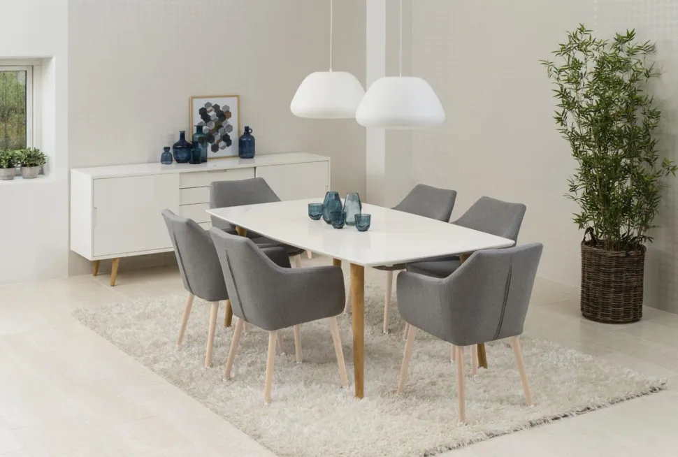 Krzesło tapicerowane Nora idealnie prezentuje się przy jadalnianym stole. Sprawdzi się też jako dodatek do nowoczesnego salonu, hotelowego lobby, gabinetu czy restauracji. Zastosowane materiały są trwałe i wytrzymałe, a także łatwe w utrzymaniu czystości. Nogi krzesła zapewniają dobrą stabilność, a dodatkowa warstwa lakieru zabezpiecza drewno przed drobnymi uszkodzeniami. Krzesło posiada także specjalne nakładki zabezpieczające podłogę przed porysowaniem.