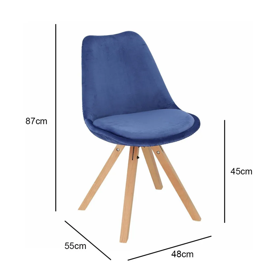 Krzesło Norden Star Square Velvet to nowoczesny design, który wkomponuje się w każdą aranżację. Siedzisko pokryte zostało przyjemną w dotyku velvetową tkaniną, w kolorze niebieskim. Krzesło posiada wygodną poduszkę, która wraz z wyprofilowanym oparciem zwiększy komfort podczas użytkowania i pozwoli na relaks po ciężkim dniu. Krzesło Norden sprawdzi się również jako krzesło w restauracji ze względu na swoją dużą wytrzymałość. Podstawę mebla stanowią nogi, wykonane z olejowanego drewna kauczukowego. Drewno kauczukowe jest twarde i wytrzymałe, co zapewni stabilność konstrukcji. Atutem kauczuku jest również odporność na zadrapania i działanie wody, dzięki czemu mebel z pewnością posłuży nam długi czas. Nogi zakończone zostały plastikowymi stopkami, które zabezpieczą podłogę przed ewentualnymi zarysowaniami. Całość wieńczą czarne elementy łączące podstawę z siedziskiem. Głębokość siedziska: 42cm