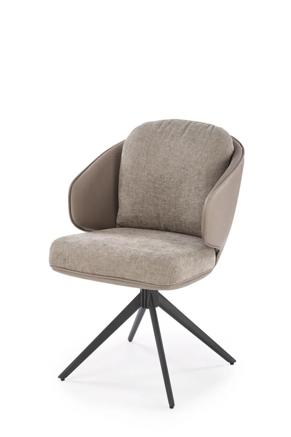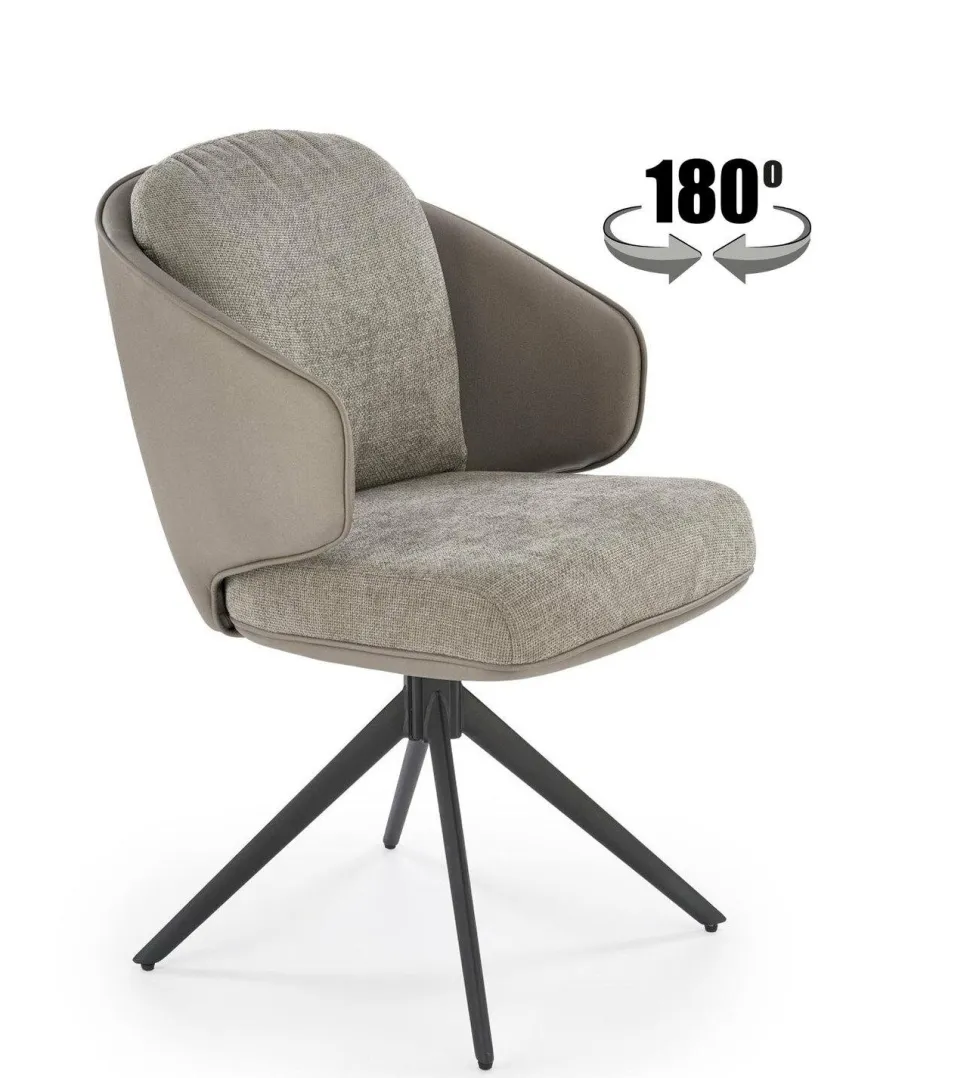 Krzesło obrotowe Arleth w szarym kolorze to idealne połączenie stylu i funkcjonalności. Dzięki funkcji obracania o 180 stopni, zapewnia wygodę użytkowania w każdej sytuacji. Siedzisko wykonane z wysokiej jakości tkaniny gwarantuje komfort, podczas gdy tył siedziska z eco skóry dodaje elegancji i nowoczesnego wyglądu. Krzesło stoi na czterech stabilnych, czarnych nogach z malowanej proszkowo stali, co zapewnia trwałość i estetykę. Dodatkowo, wyposażone jest w podłokietniki, które zapewniają wsparcie dla ramion i zwiększają komfort podczas długotrwałego siedzenia.