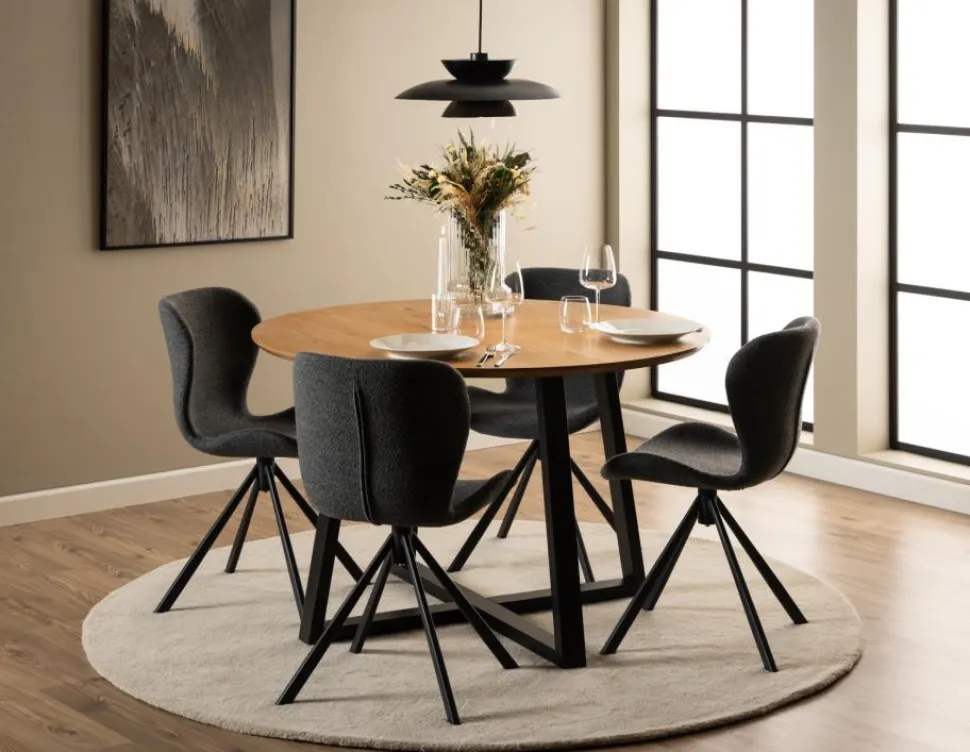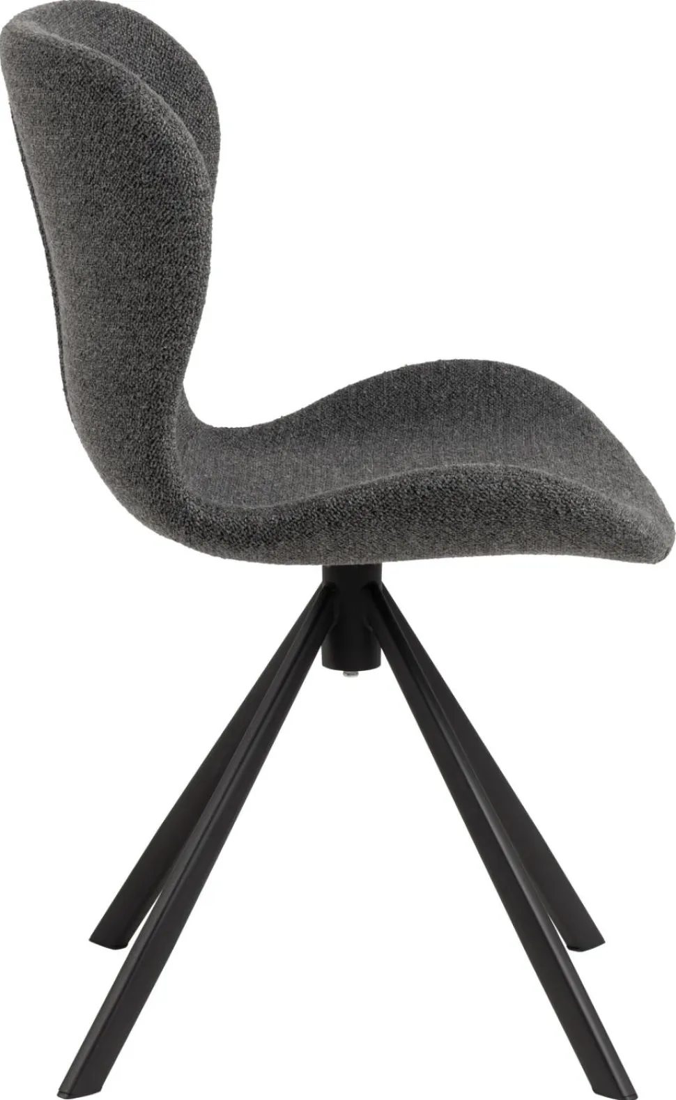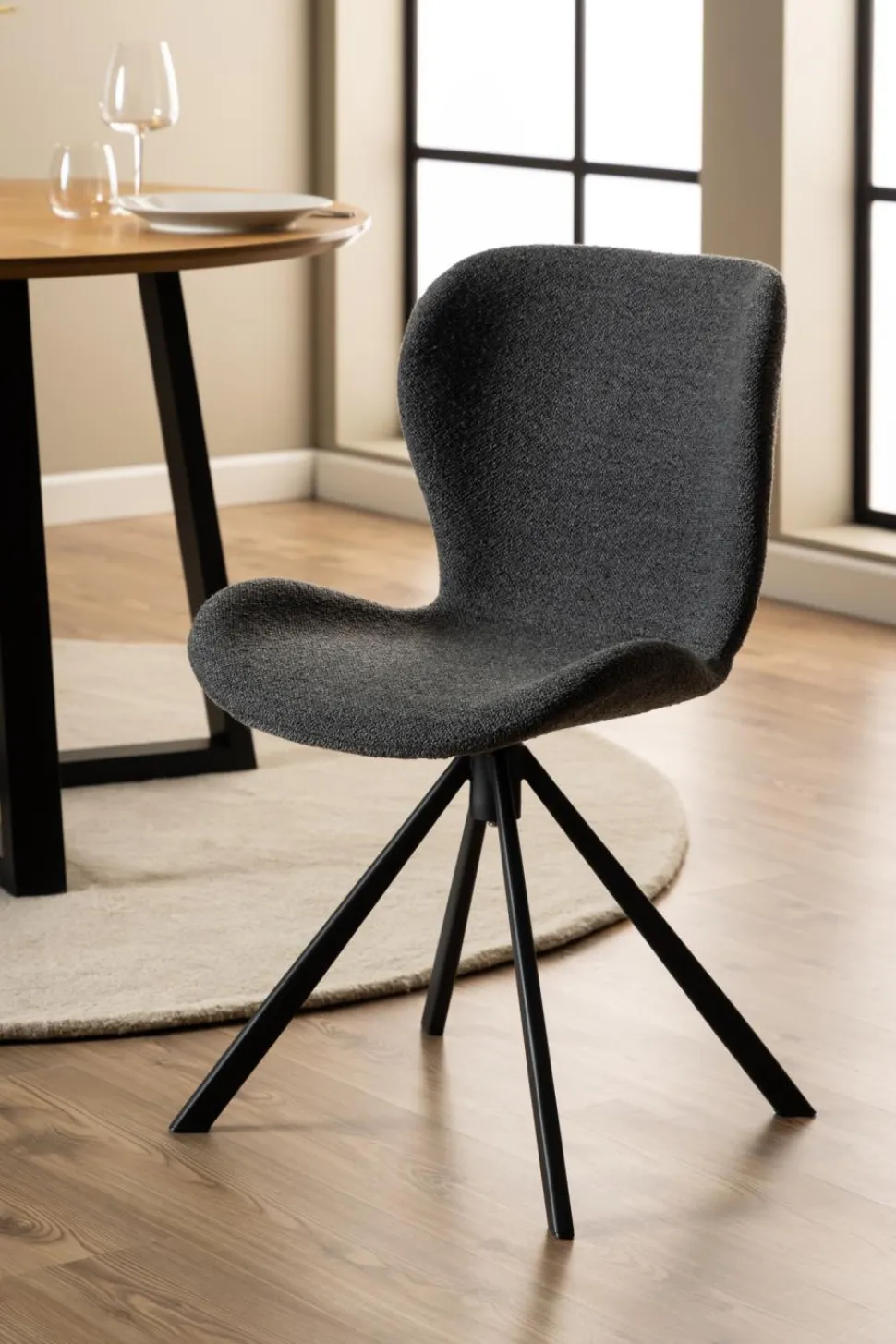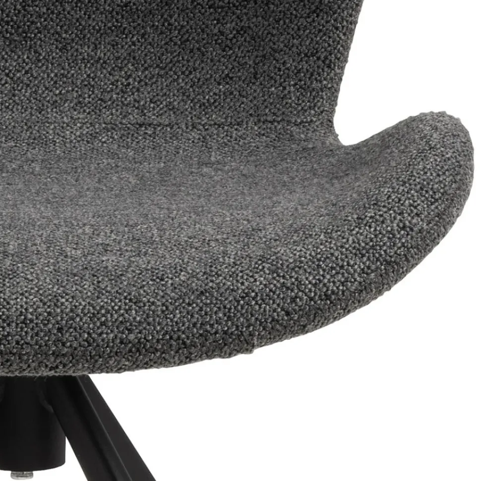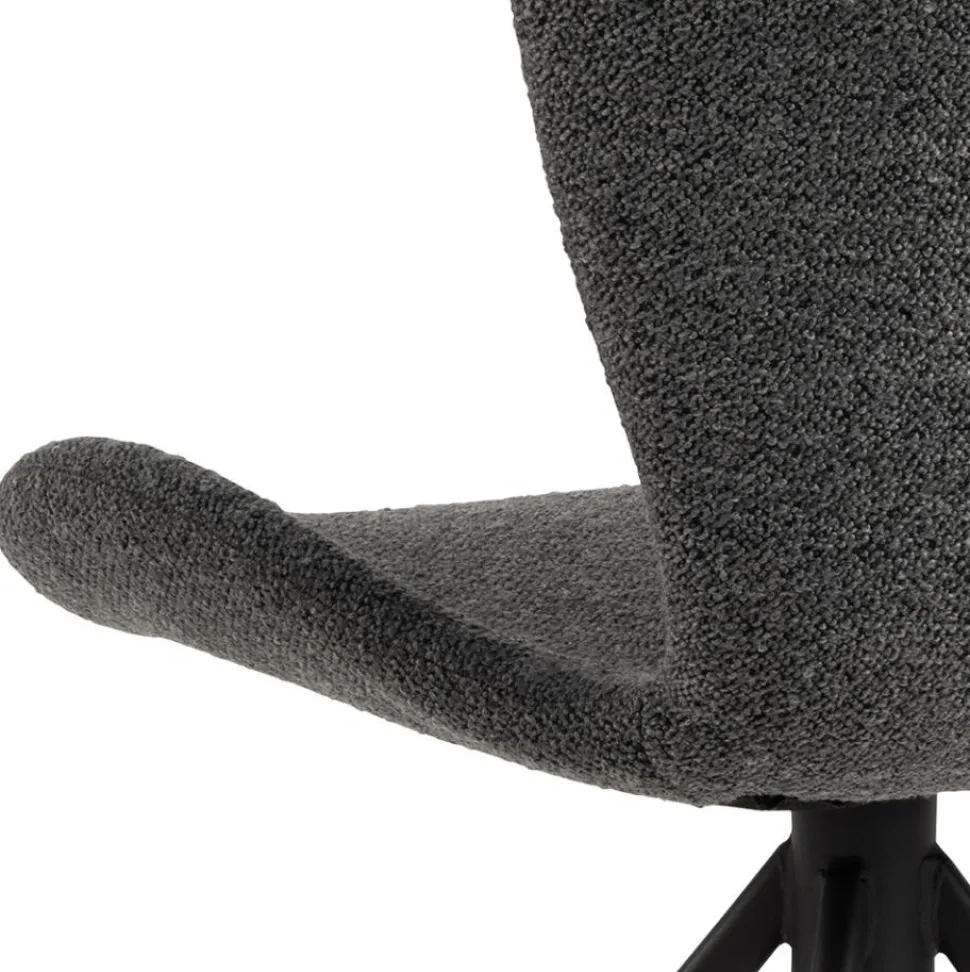 Krzesło obrotowe Batilda to wyjątkowy element wyposażenia jadalni, który nie tylko przyciąga wzrok swoim nowoczesnym designem, ale także gwarantuje komfortowe i praktyczne użytkowanie. Dzięki zastosowaniumiękkiej tkaniny bouclé o charakterystycznej pętelkowej strukturze,siedzisko tego krzesła jest nie tylko wygodne, ale również dodaje elegancji całej przestrzeni.Tapicerka w kolorze Monza 130, utrzymana w antracytowej tonacji,harmonijnie komponuje się zarówno z nowoczesnymi, jak i klasycznymi aranżacjami wnętrz.