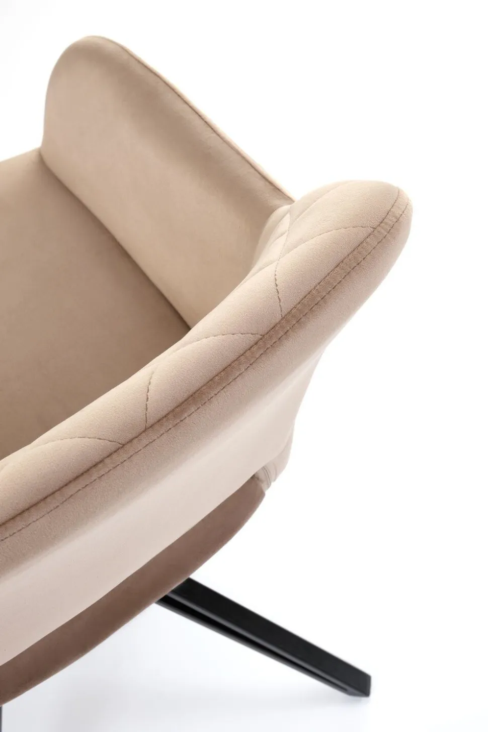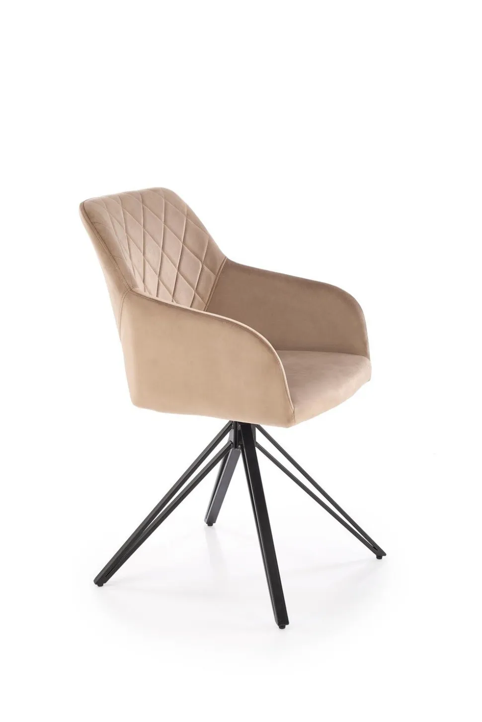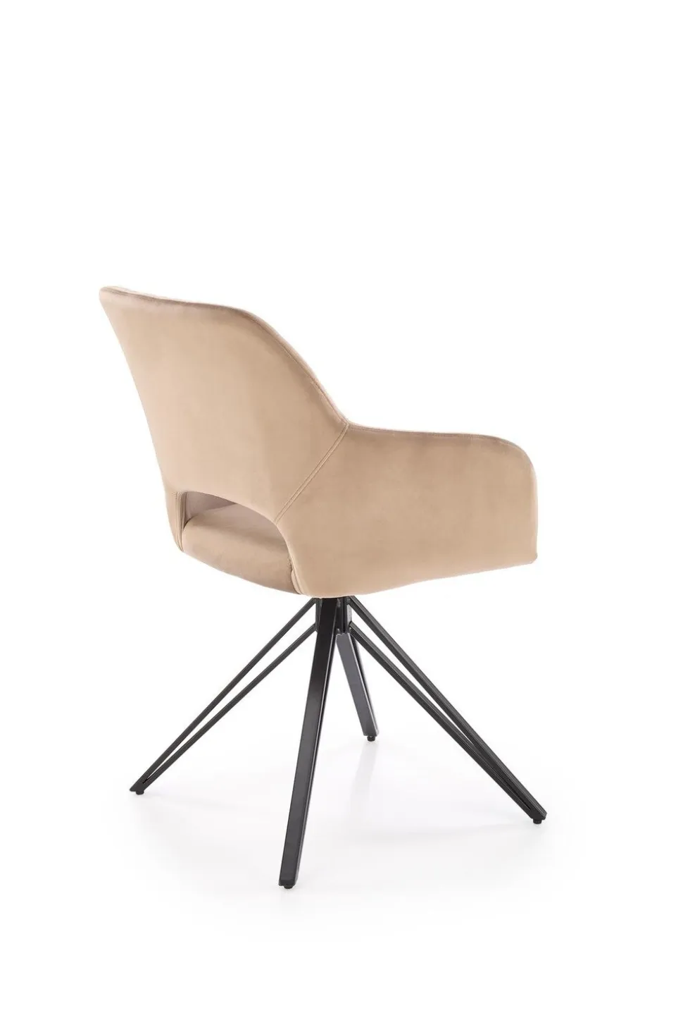 Krzesło obrotowe Cretas Velvet beżowe to połączenie luksusu, wygody i nowoczesnego designu, które doskonale sprawdzi się w różnych aranżacjach wnętrz. Wykonane z wysokiej jakości tkaniny velvetowej w eleganckim beżowym kolorze (BLUVEL 40) oraz wyposażone w cztery stabilne, czarne nogi malowane proszkowo, krzesło to emanuje stylem i trwałością. Nogi krzesła są zabezpieczone od spodu, co chroni podłogę przed uszkodzeniami, zapewniając jednocześnie stabilność mebla. Szerokie kubełkowe siedzisko z ozdobnymi pikowaniami na oparciu oraz podłokietniki gwarantują komfort użytkowania, a otwór między siedziskiem a oparciem zapewnia cyrkulację powietrza, co jest szczególnie przydatne podczas długiego użytkowania.