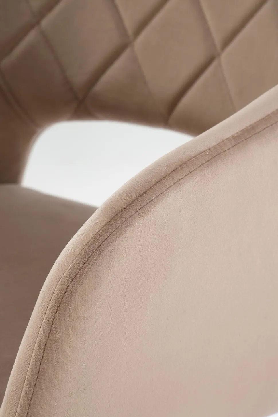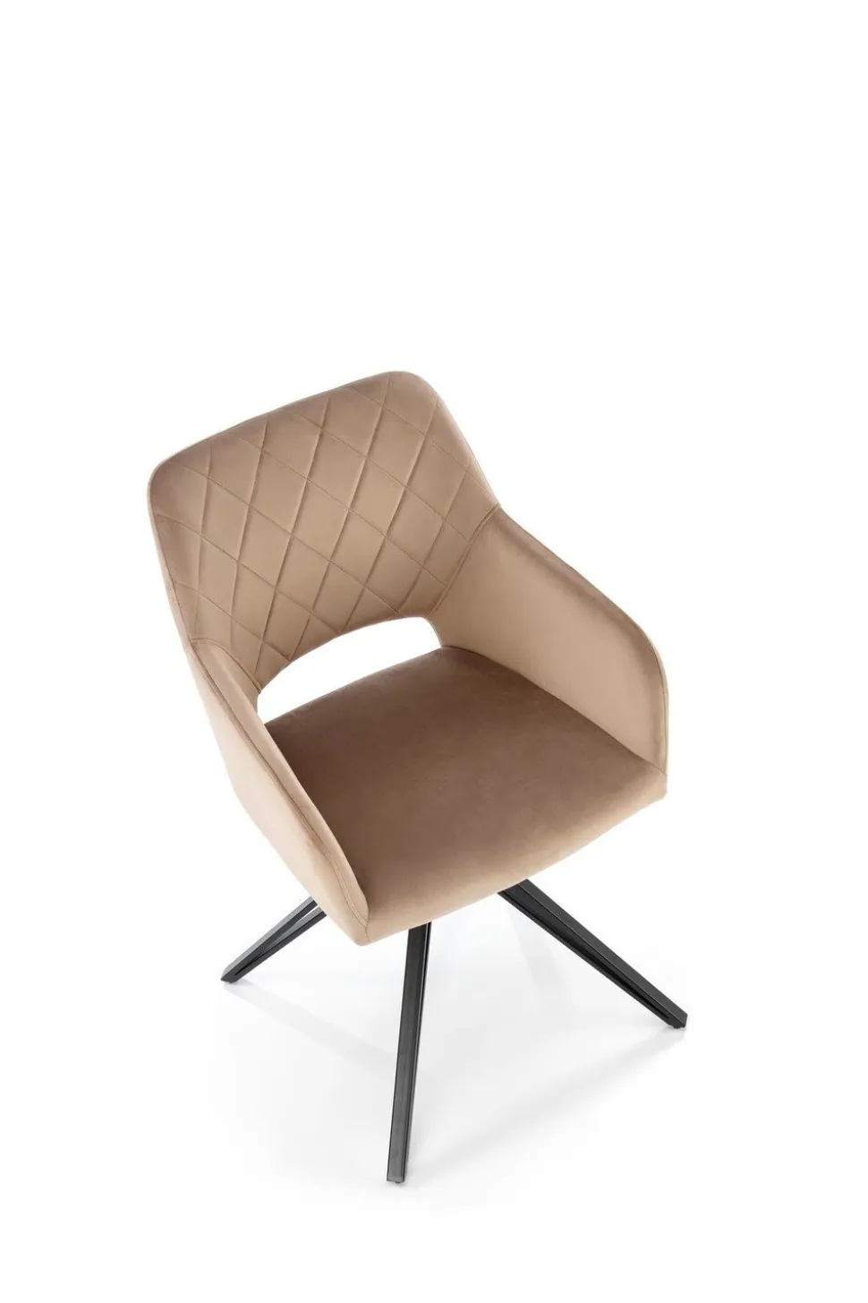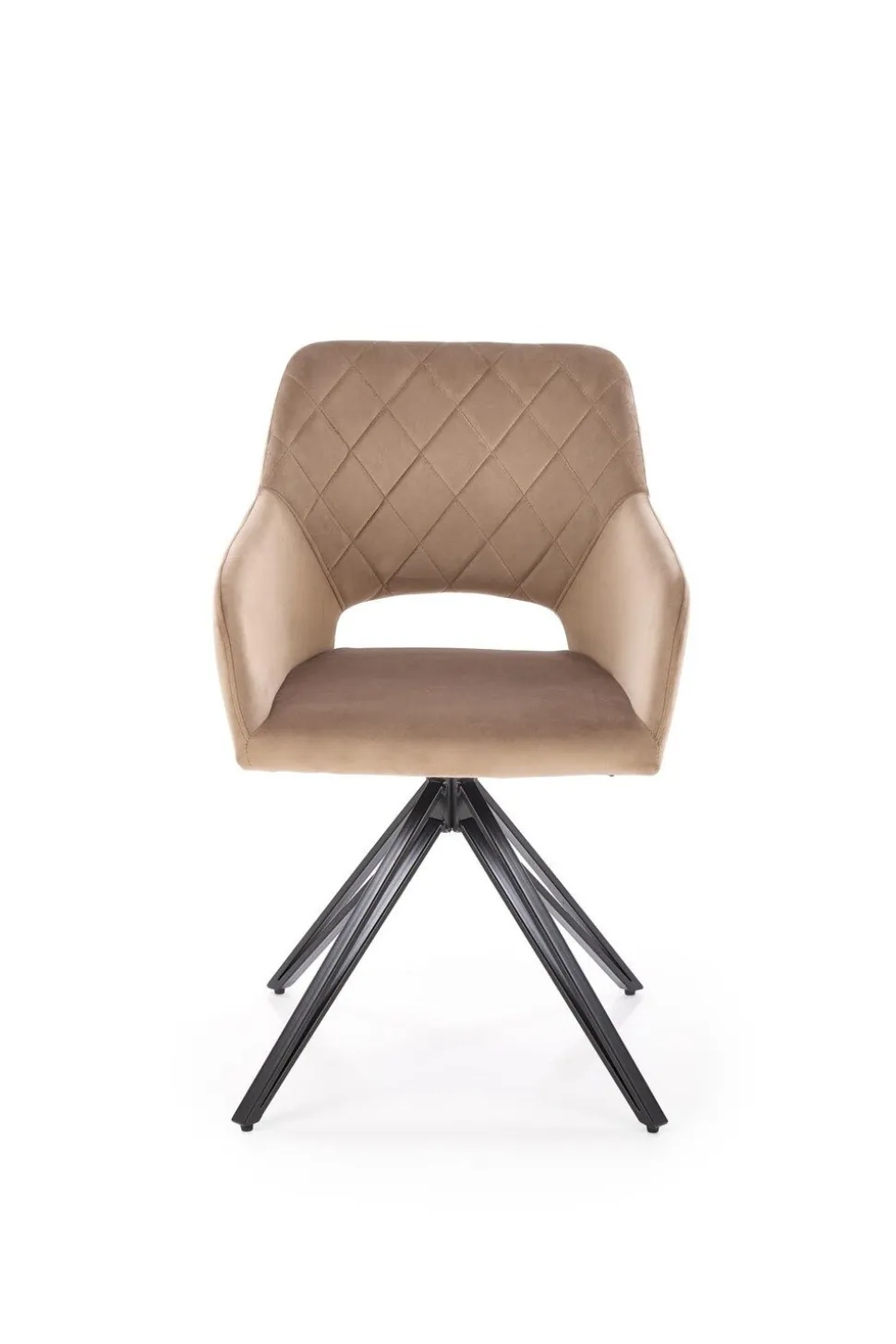 Krzesło obrotowe Cretas Velvet beżowe to połączenie luksusu, wygody i nowoczesnego designu, które doskonale sprawdzi się w różnych aranżacjach wnętrz. Wykonane z wysokiej jakości tkaniny velvetowej w eleganckim beżowym kolorze (BLUVEL 40) oraz wyposażone w cztery stabilne, czarne nogi malowane proszkowo, krzesło to emanuje stylem i trwałością. Nogi krzesła są zabezpieczone od spodu, co chroni podłogę przed uszkodzeniami, zapewniając jednocześnie stabilność mebla. Szerokie kubełkowe siedzisko z ozdobnymi pikowaniami na oparciu oraz podłokietniki gwarantują komfort użytkowania, a otwór między siedziskiem a oparciem zapewnia cyrkulację powietrza, co jest szczególnie przydatne podczas długiego użytkowania.