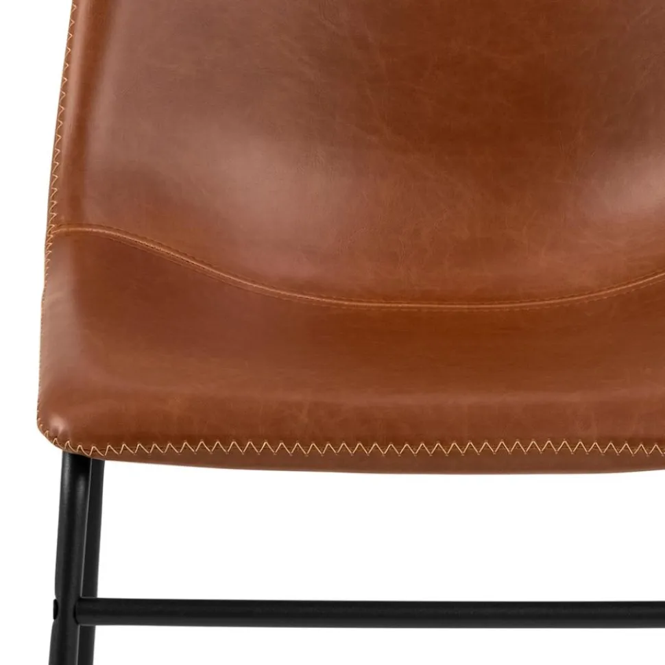 Krzesło Oregon zachwyca swoim nowoczesnym designem, który doskonale współgra z różnorodnymi aranżacjami wnętrz. Ozdobione kontrastującymi kremowymi zygzakowatymi szwami siedzisko w kolorze brandy dodaje meblowi charakteru i unikalności. Tapicerowane gładką tkaniną ze sztucznej skóry, krzesło emanuje elegancją, co sprawia, że stanowi doskonałe uzupełnienie zarówno nowoczesnych, jak i klasycznych wnętrz.