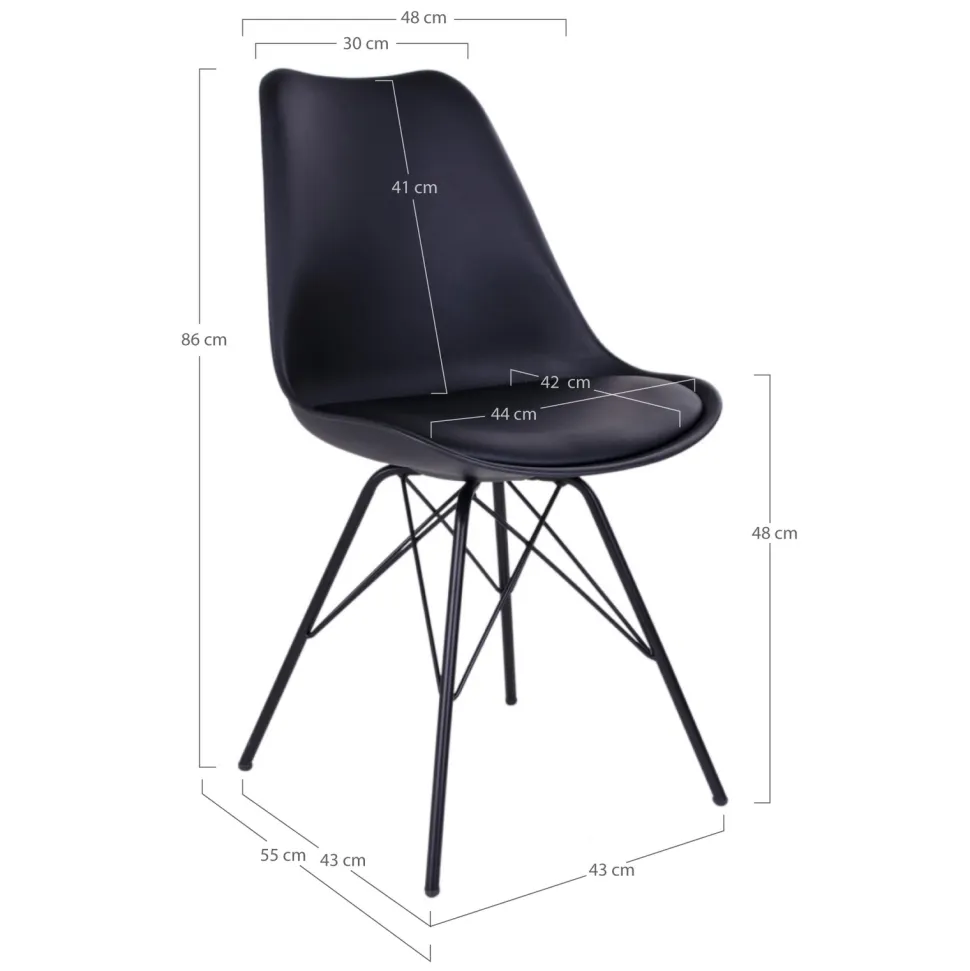 Prezentowane Krzesło Oslo czarne PU to nowoczesne i wytrzymałe meble, które idealnie sprawdzą się w każdym pomieszczeniu. Wykonane z trwałych materiałów – metalu i skóry ekologicznej, gwarantują długotrwałe użytkowanie. Siedzisko obite jest czarną eko skórą, która jest nie tylko elegancka, ale i wygodna. Metalowa podstawa zapewnia stabilność, a jej czarny kolor dodaje całości elegancji. Krzesło nie posiada podłokietników, co sprawia, że jest bardziej minimalistyczne i nowoczesne.