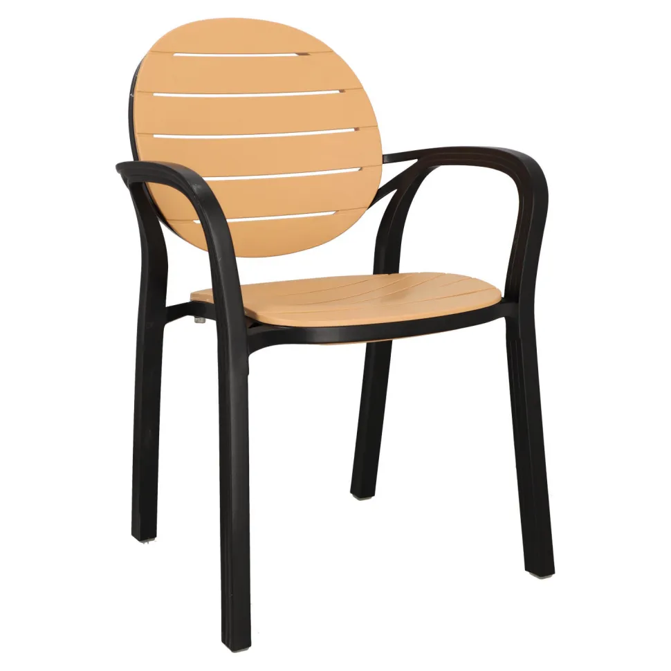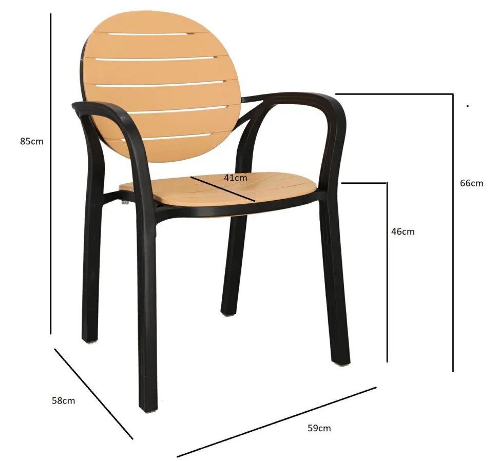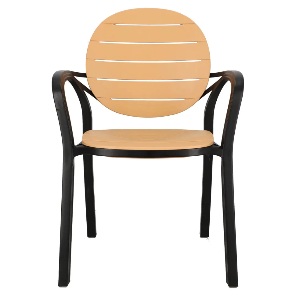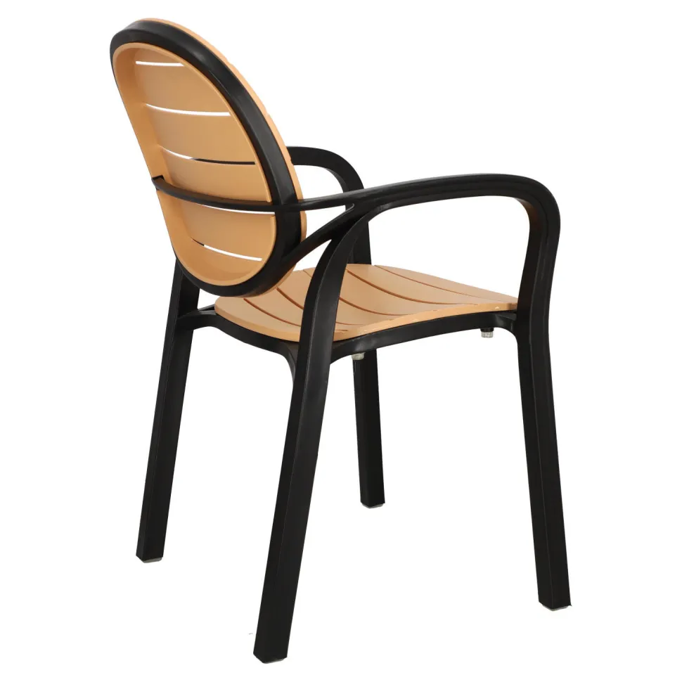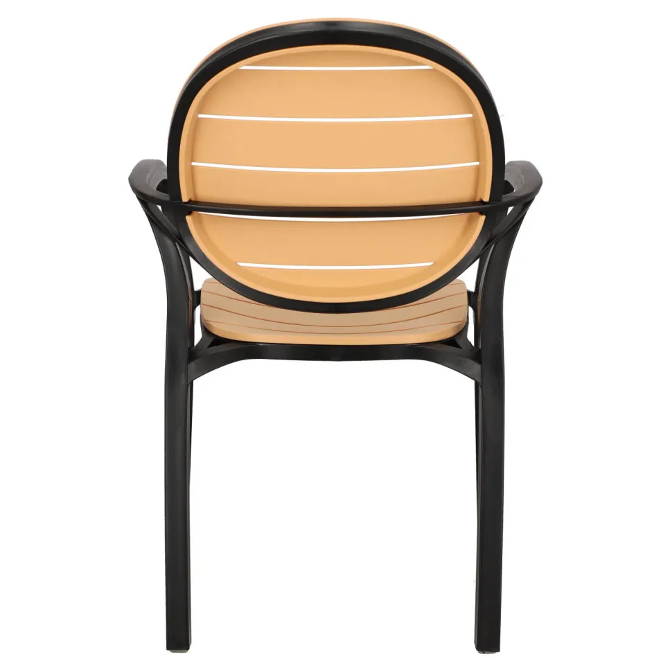 Krzesło Ottavio to idealne połączenie funkcjonalności i estetyki, które z pewnością zachwyci każdego użytkownika. Wykonane z wysokiej jakości polipropylenu, gwarantuje trwałość i wytrzymałość przez wiele lat.Jego czarna rama stanowi doskonały kontrast dla brązowego oparcia i siedziska, które przypominają deski drewna. To połączenie naturalnego i nowoczesnego designu sprawia, że krzesło Ottavio staje się prawdziwą ozdobą każdego tarasu, ogrodu czy nawet restauracyjnego ogródka.