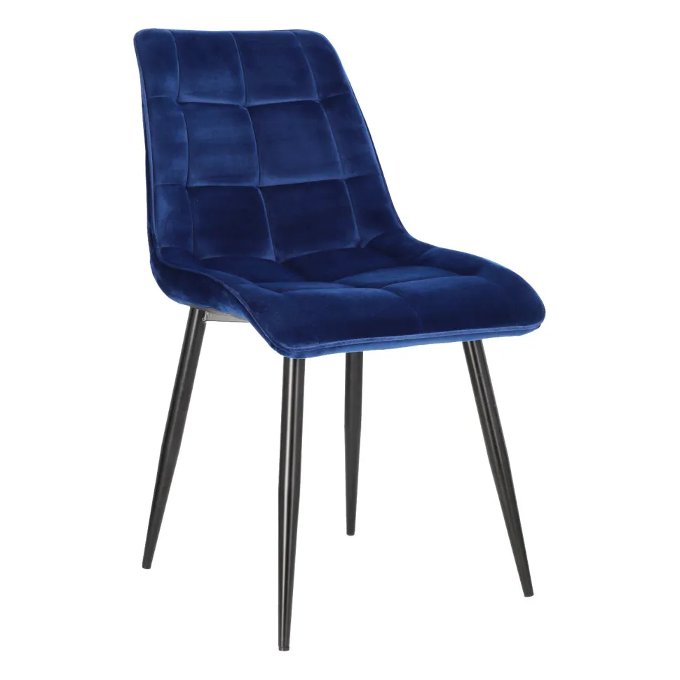 Każdy z nas posiada w swoim domu miejsce, które jest dla niego szczególnie ważne. Chęć zadbania o tę specjalną dla nas przestrzeń, sprawia, że decydujemy się na wybóroryginalnych mebli, które pozwolą na niepowtarzalną prezentację.Tapicerowane welwetowe krzesło PLAIDpomoże Ci zaaranżować przestrzeń, tak byś czuł się w niej wyjątkowo i swobodnie. Tapicerowane pikowane siedzisko krzesła jest niezwykle wygodne, dzięki wyprofilowanemu oparciu. Tkaninao wykończeniu welwetowymsprawia, że siedząc na niej, możemy poczuć się jak na przysłowiowej chmurce, gdyż cieszy nasz zmysł dotyku swoją miękkością i delikatnością. Krzesło nie posiada podłokietników, dzięki czemu wsuniemy je pod każdy stół, oszczędzając miejsce. Dlatego PLAID będzie doskonałym wyborem jakokrzesło konferencyjnelubkrzesło do jadalniz małym stołem. Metalowe nogi pomalowane proszkowo na czarno sąodporne na uszkodzenia.Półmatowe wykończenie nóg, prezentuje się bardzo elegancko, dodając meblowi nowoczesnego wyglądu. Aby zabezpieczyć podłoże przed rysowaniem, nóżki krzesła zostały zakończone stopkami z tworzywa.